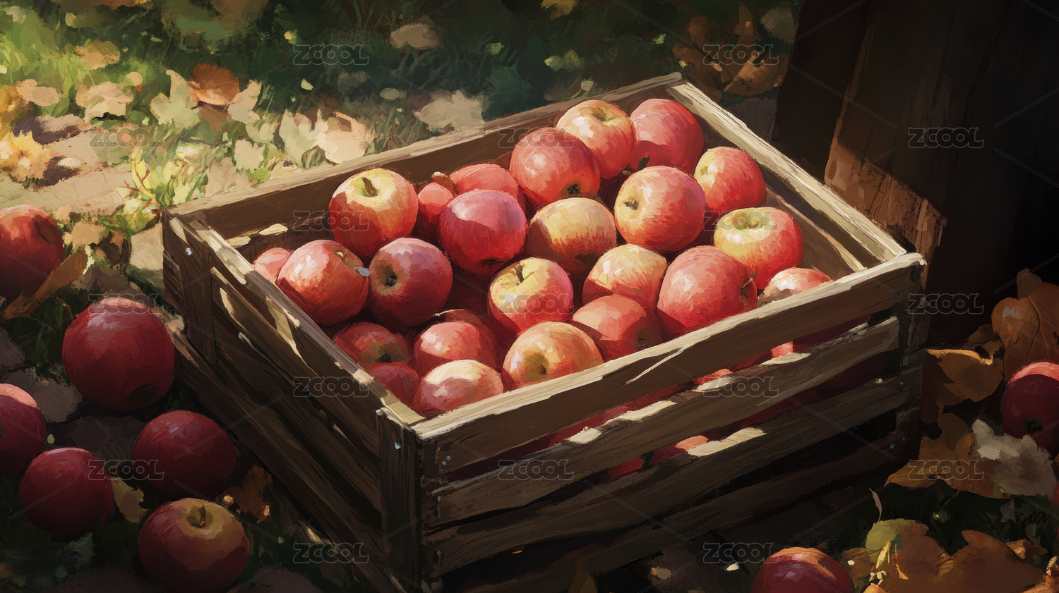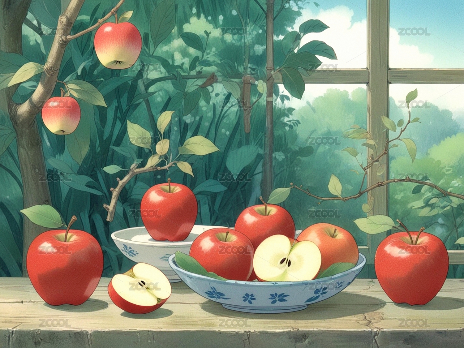AIGCFG02,宫崎骏,治愈,漫画,复古,吉卜力,动漫,苹果,果篮,筐