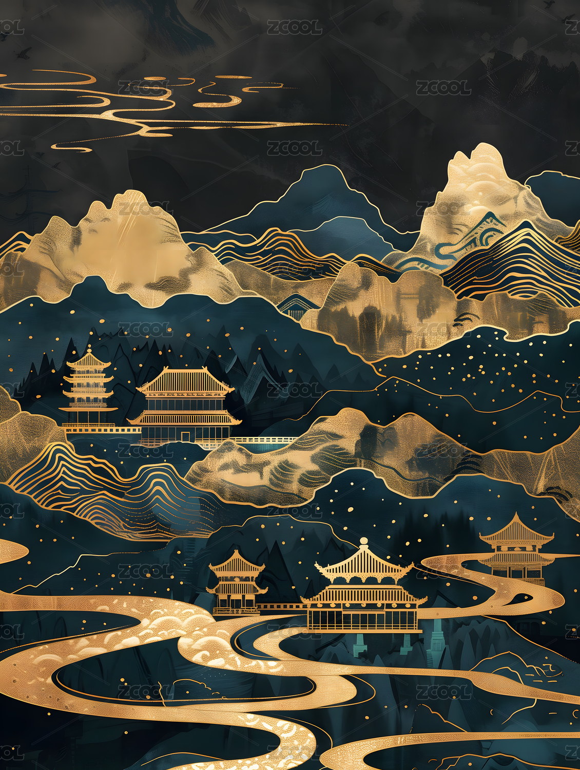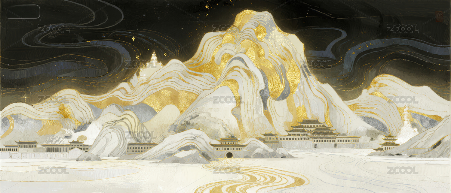 中式山水水墨风插画