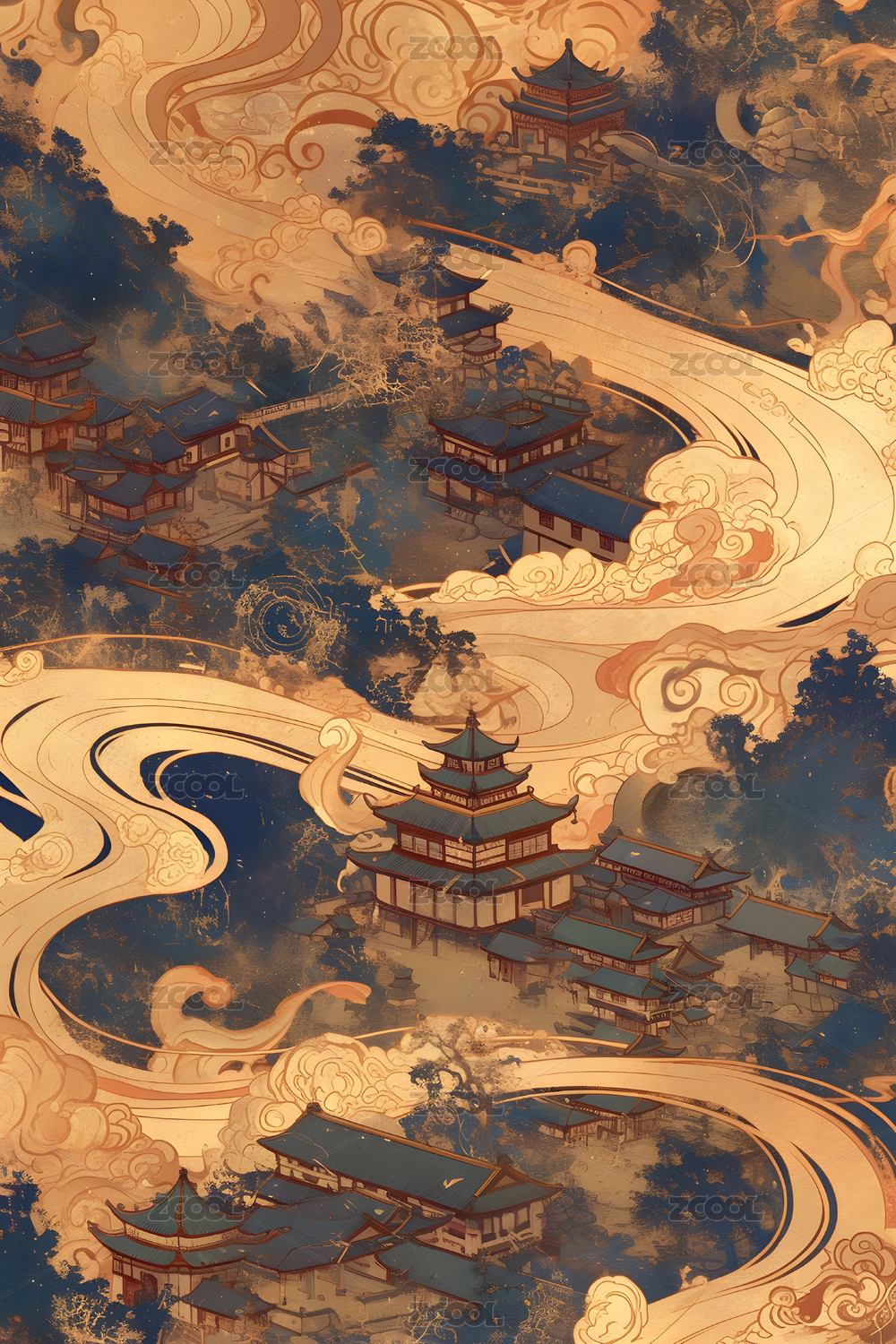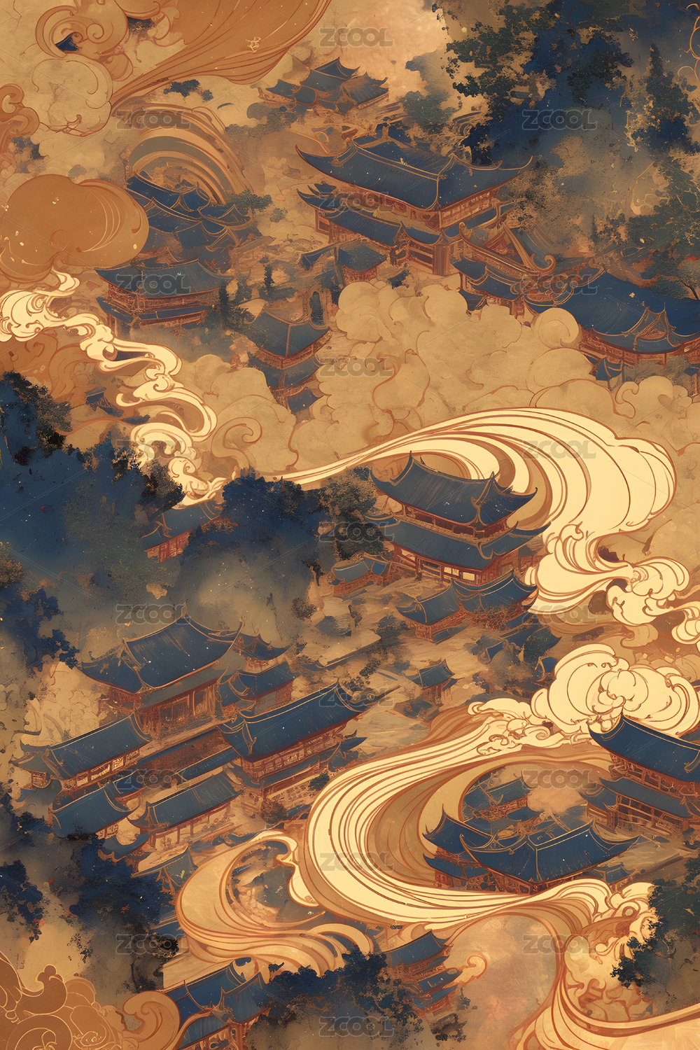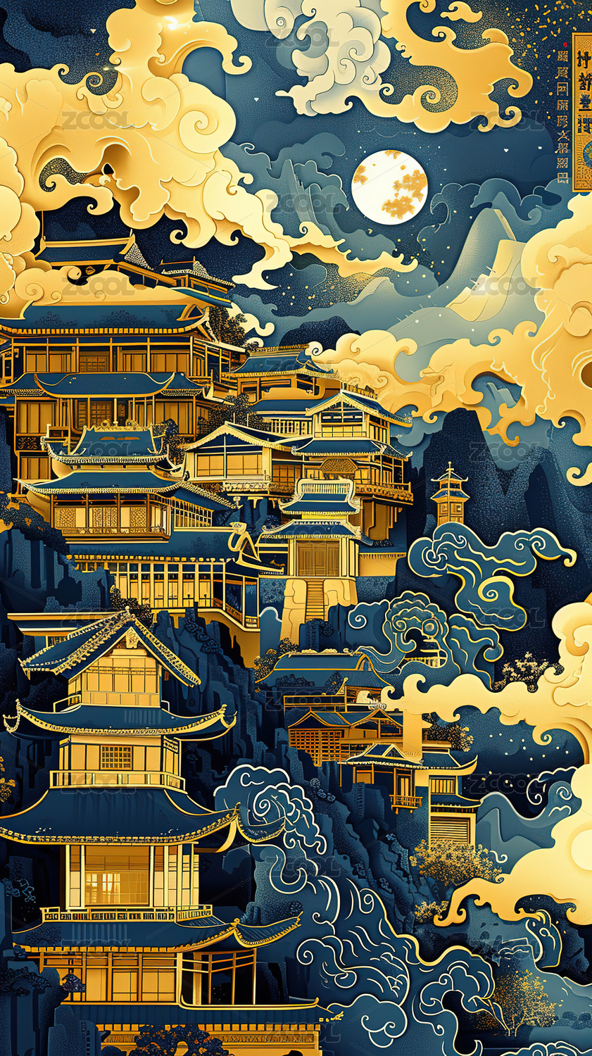 AIGCFG,国潮,建筑,古代建筑,祥云