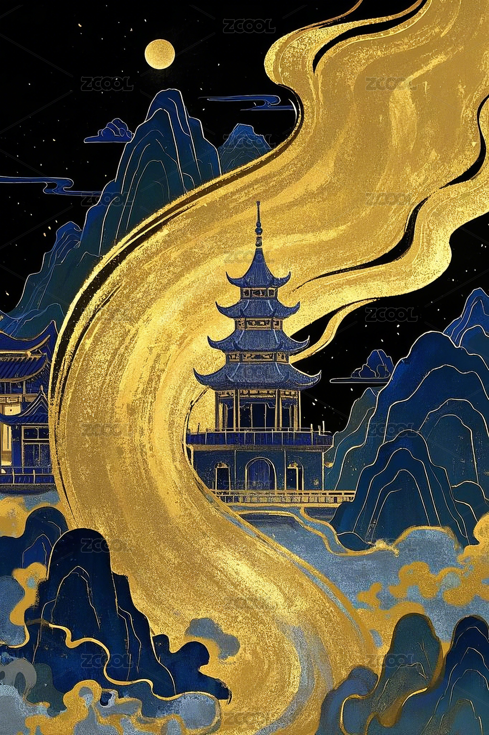 山水楼阁夜景