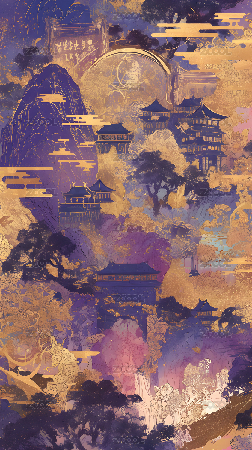 中国风的高山与古建筑