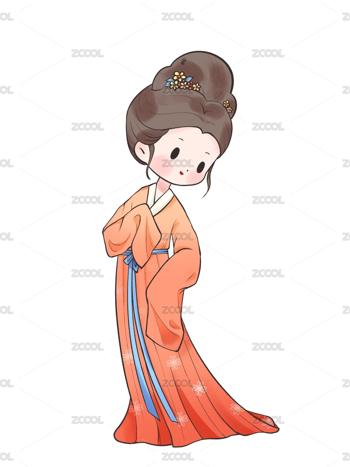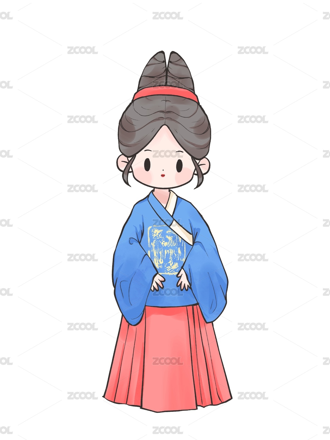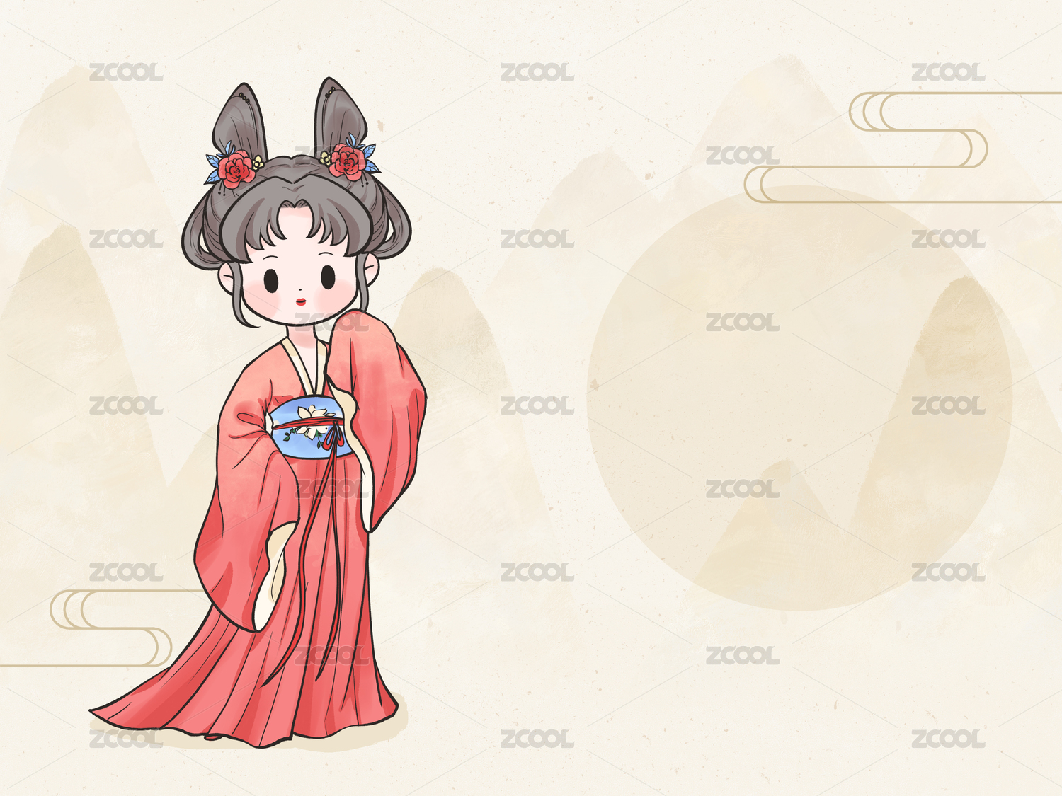 古风手绘Q版红色汉服女孩拿拨浪鼓过年
