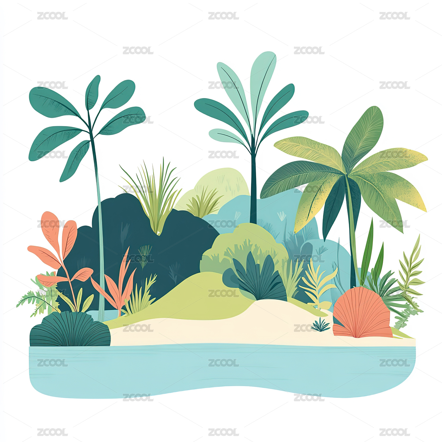 夏天热带植物插画