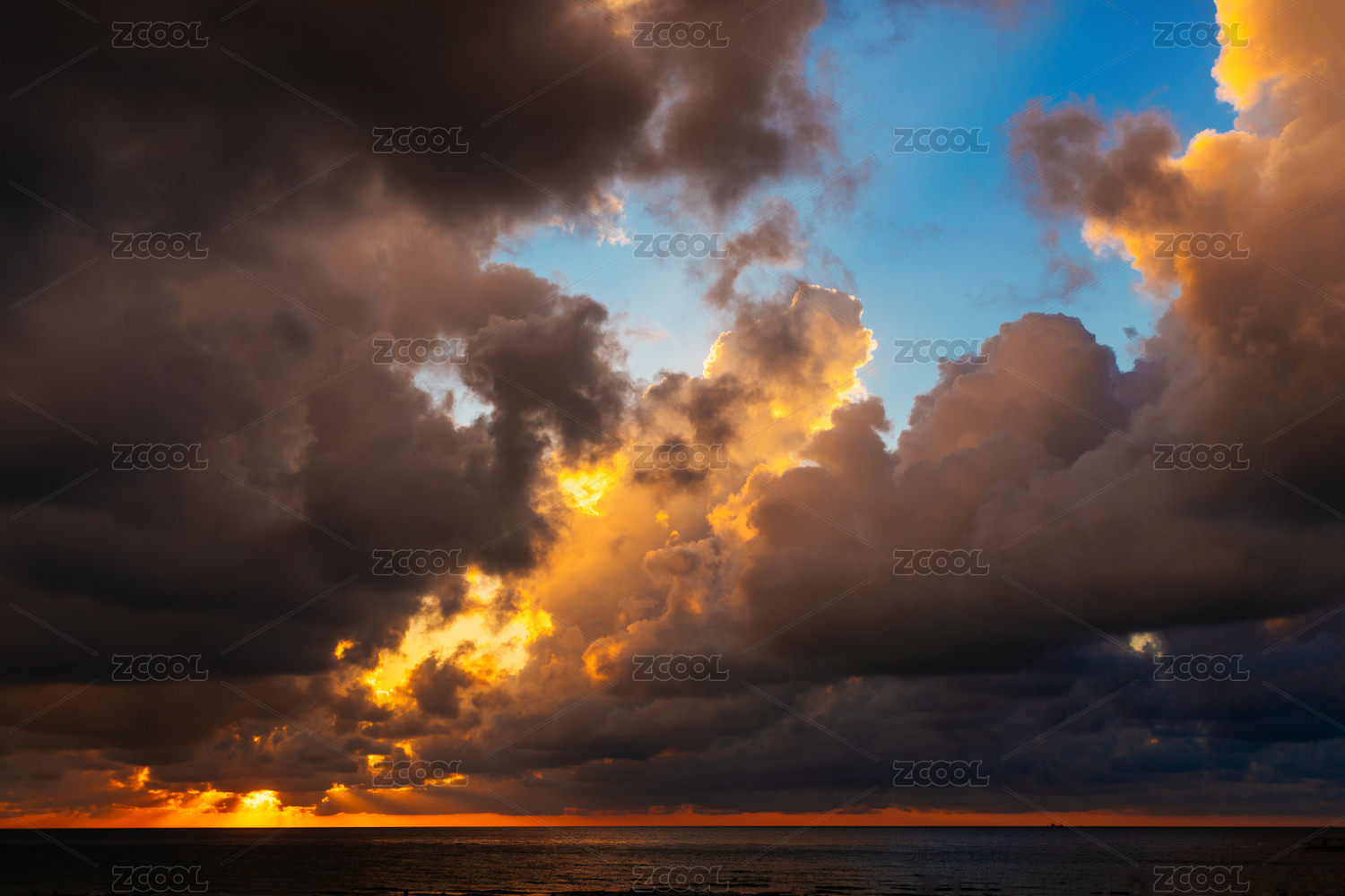 日落晚霞海洋自然风景