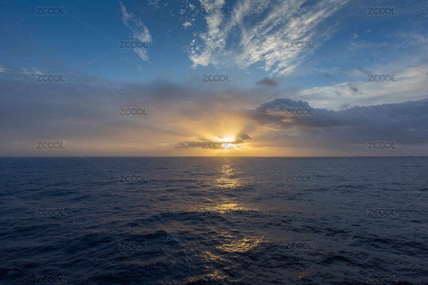 早晨辽阔的海面上彩霞满天太阳冉冉升起