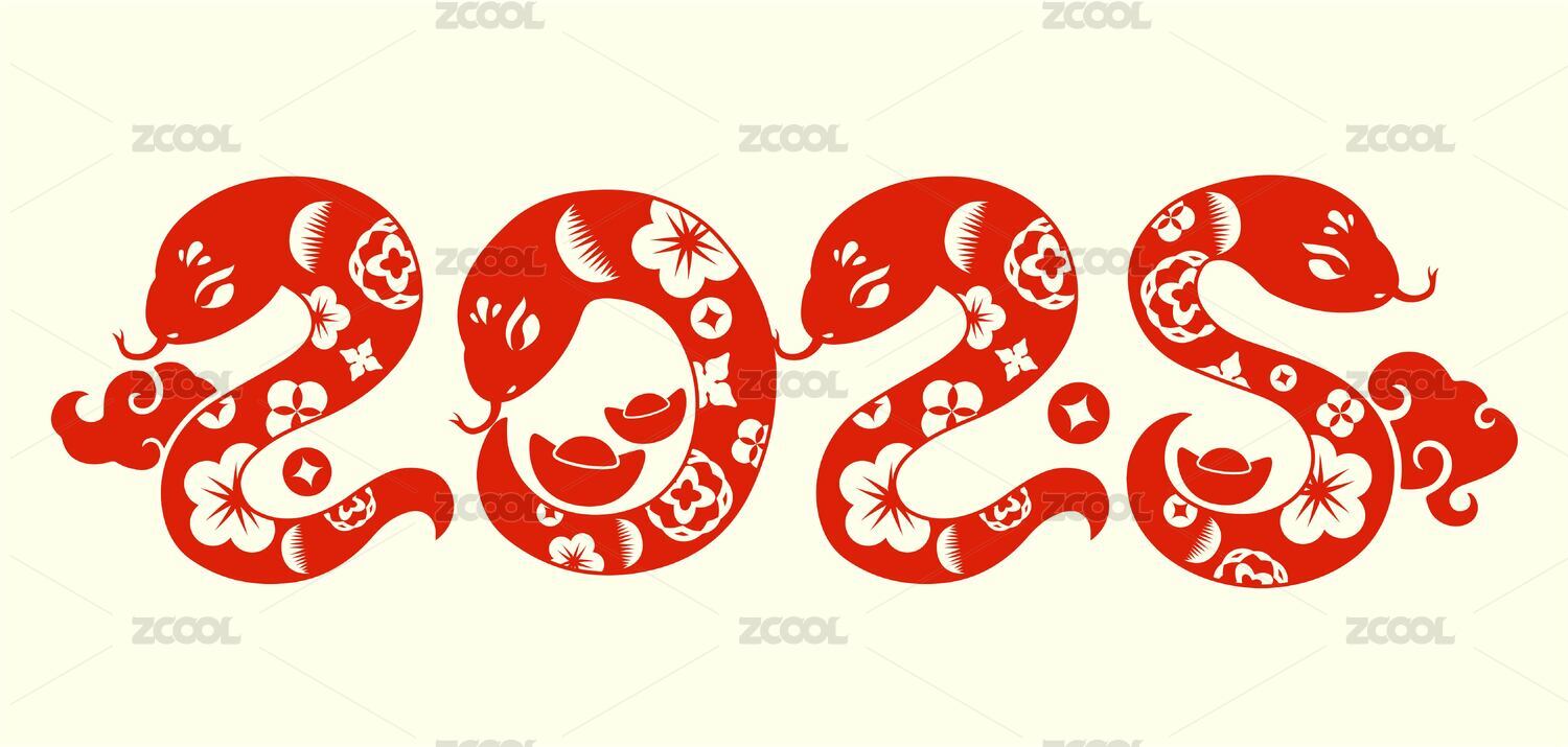 2025蛇年春节十二生肖巳蛇剪纸风格