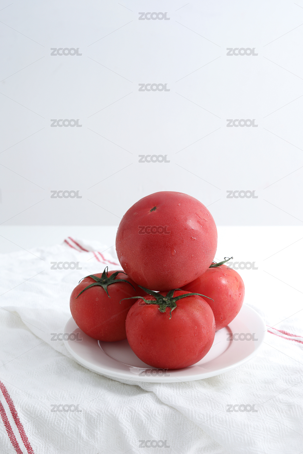 白色桌面上新鲜素食蔬菜果实美食番茄西红柿