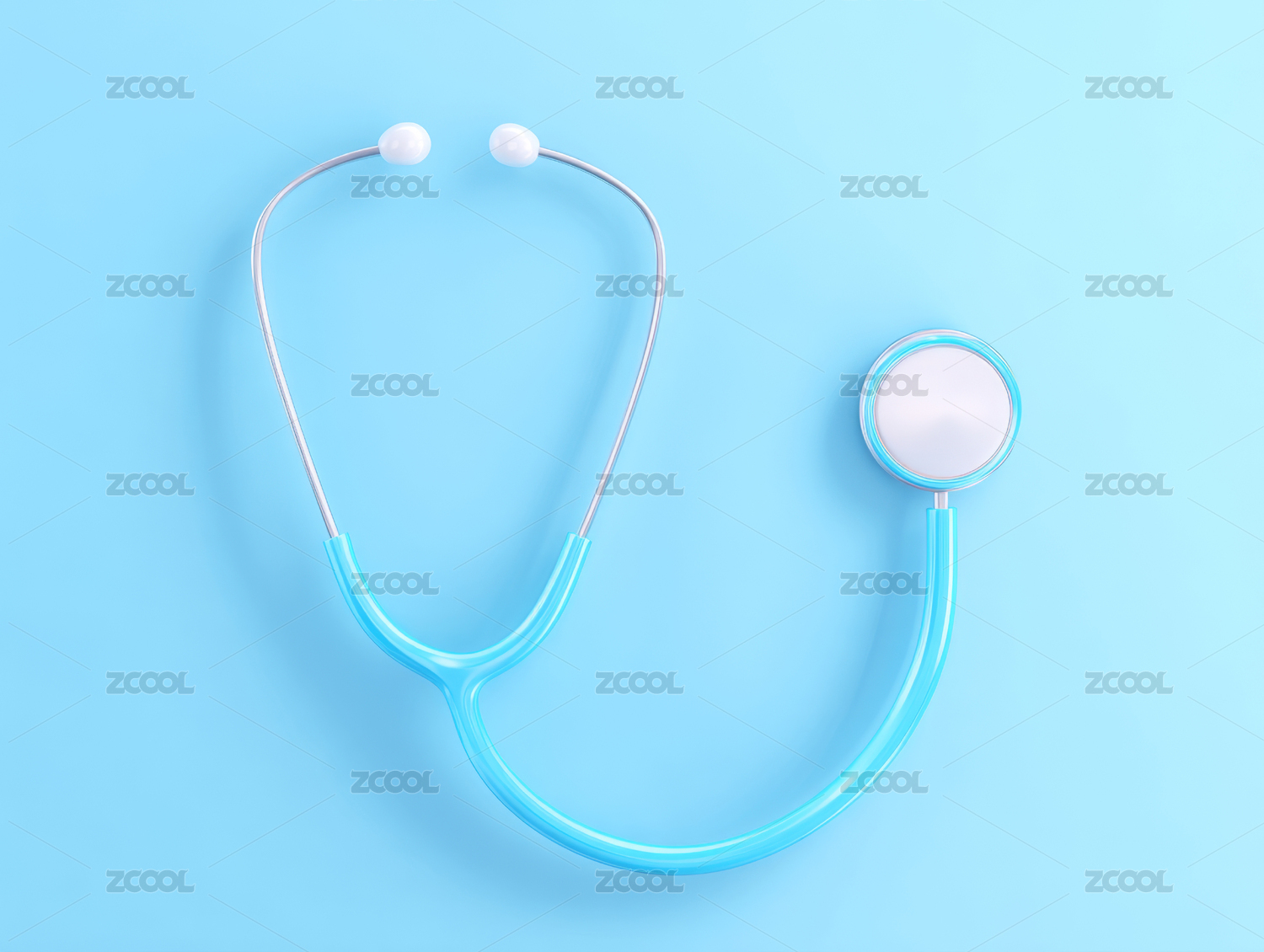 听诊器在白色背景下,工作室shot.blue调色影像。