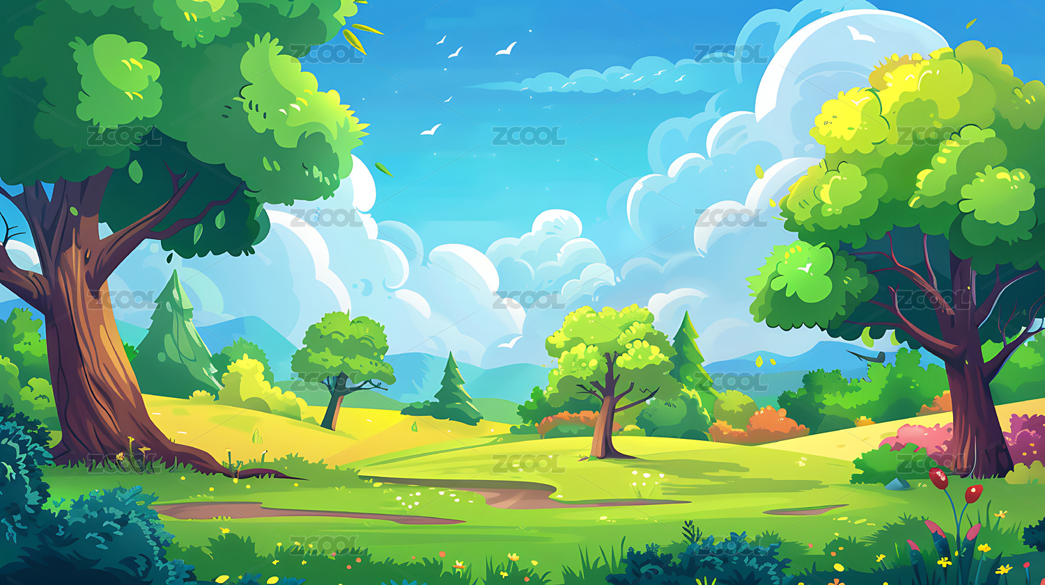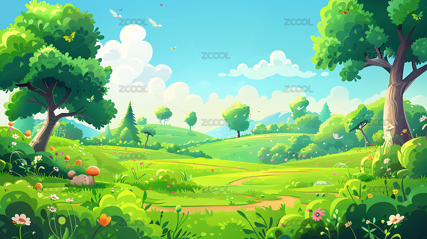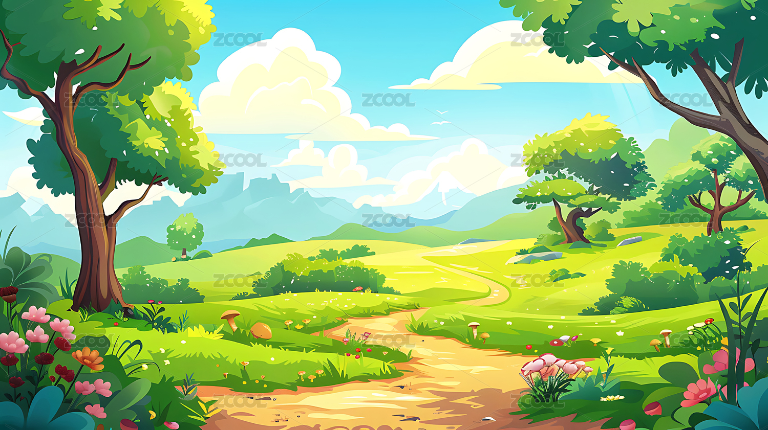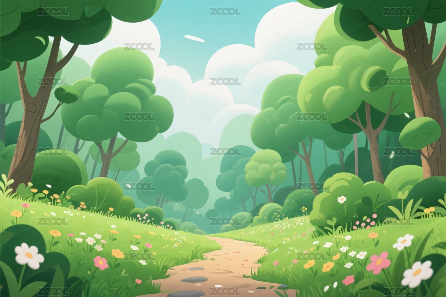 森林小径卡通场景