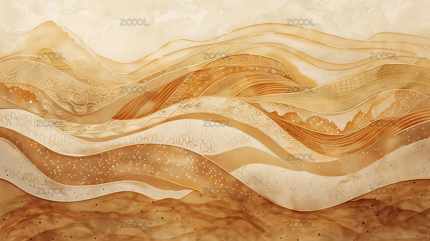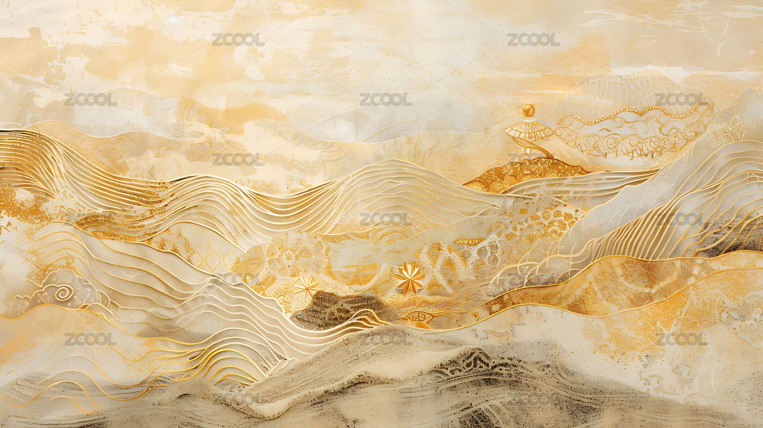 国风新中式水墨山水插画