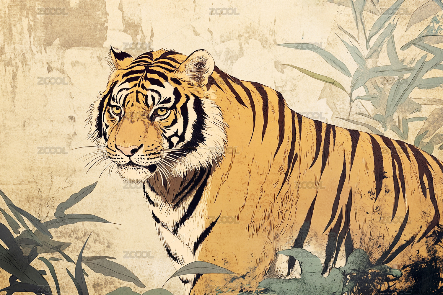 AIGCFG01,浮世绘,动物,古画,古代,日式,日本,北斋,风格,插画