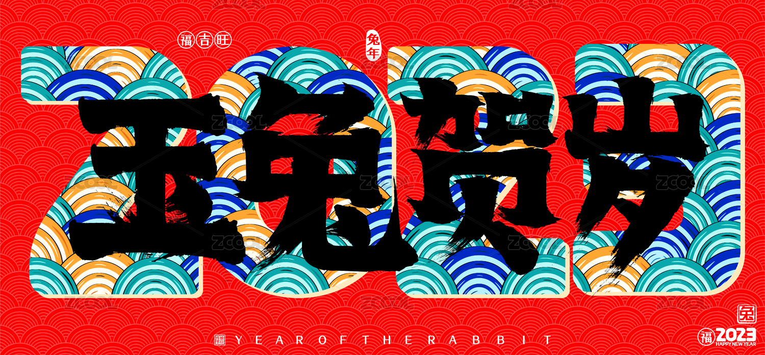 2023玉兔贺岁喜庆中国红兔年春节毛笔字