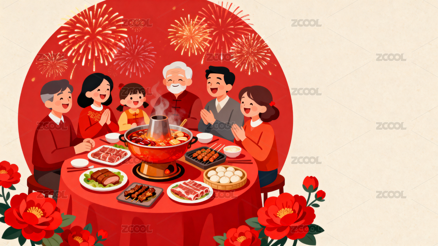 大年三十团圆饭年俗插画