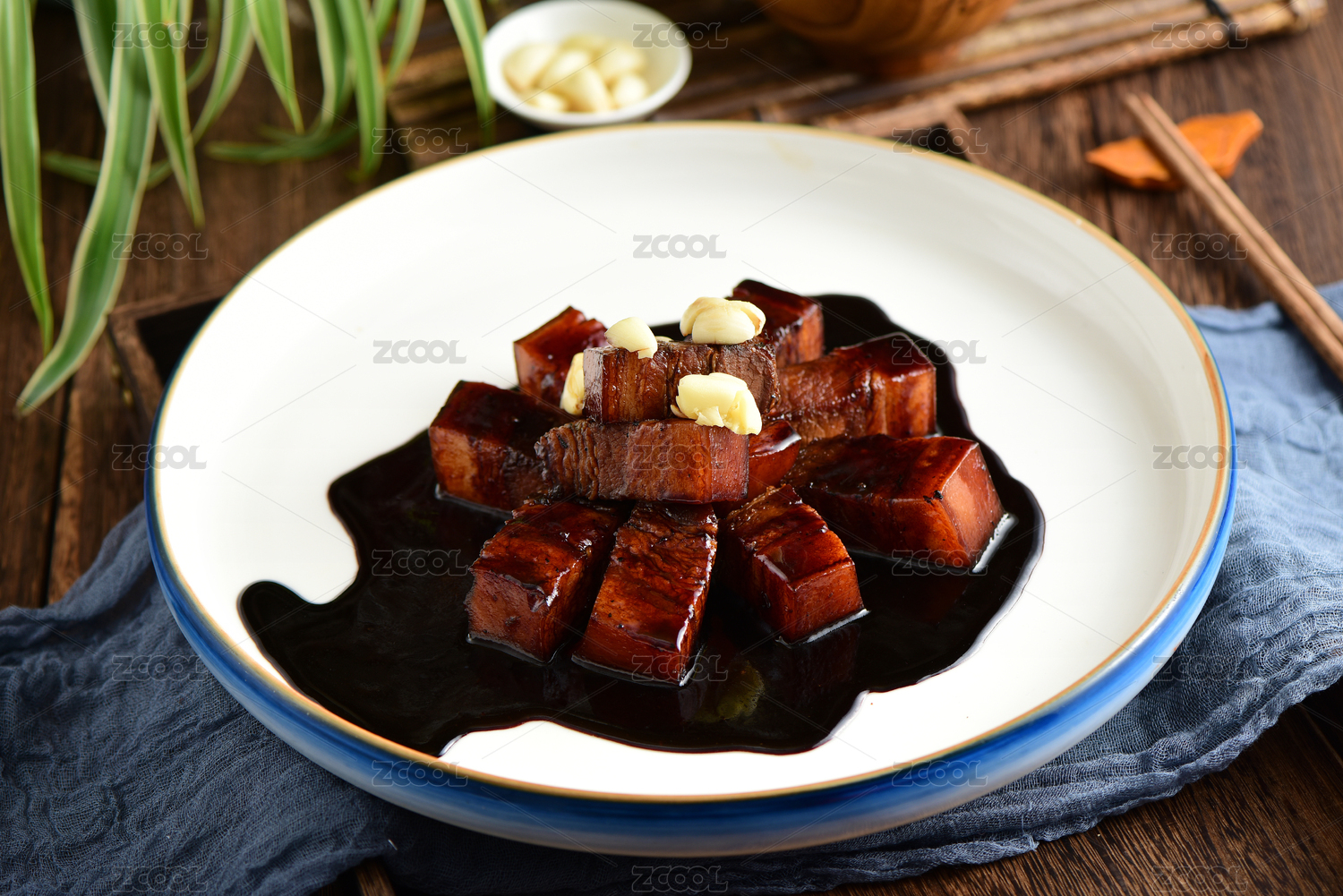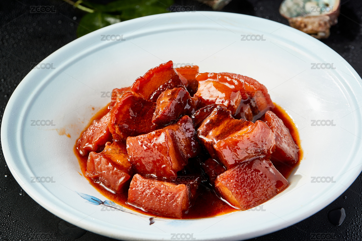 木质,复古,黄色,猪肉,卤肉,大肉块,大肉,瓷盘,白瓷盘,卤猪肉