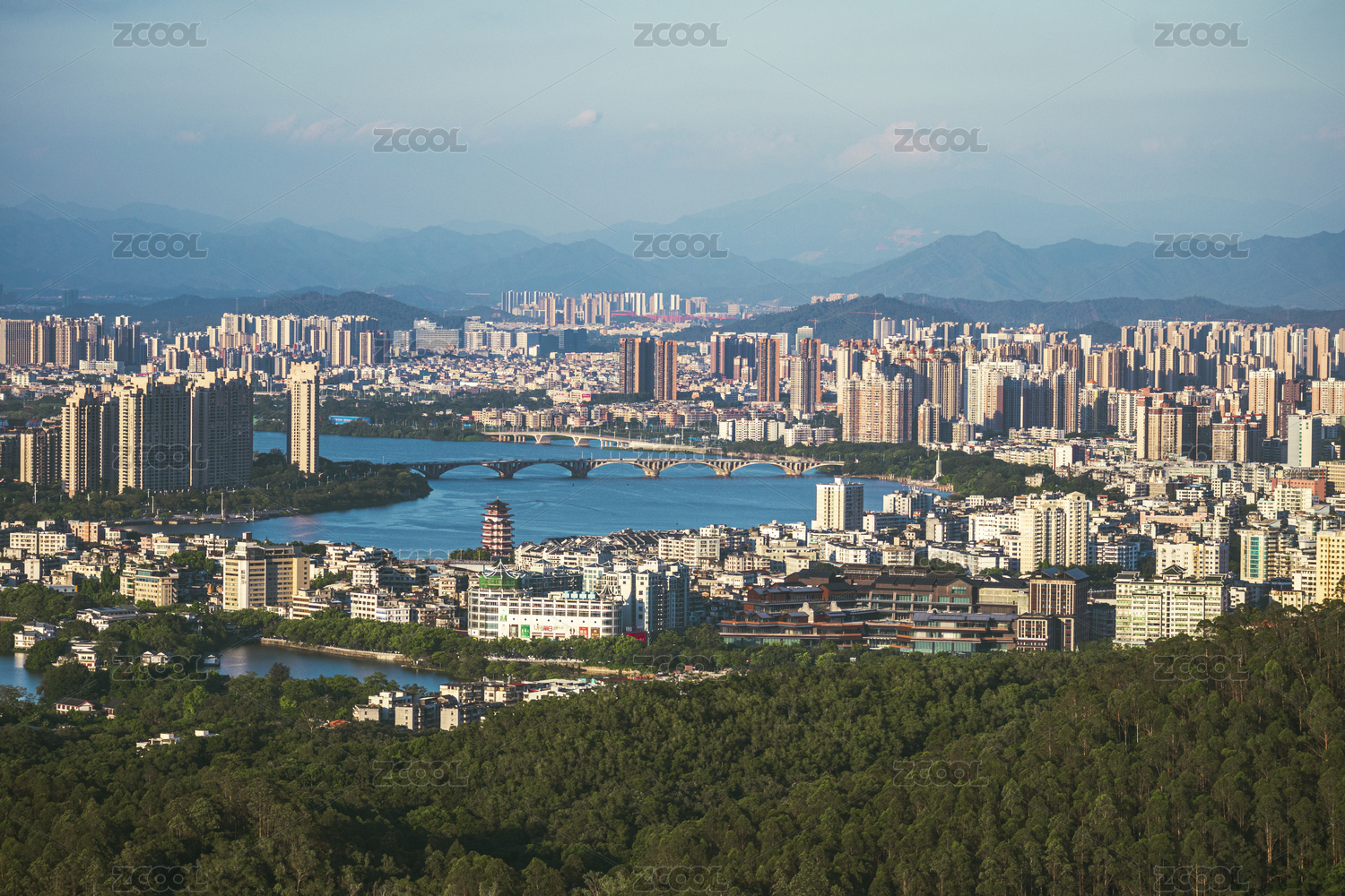 中国广东省清远市江心岛和凤城大桥航拍景观