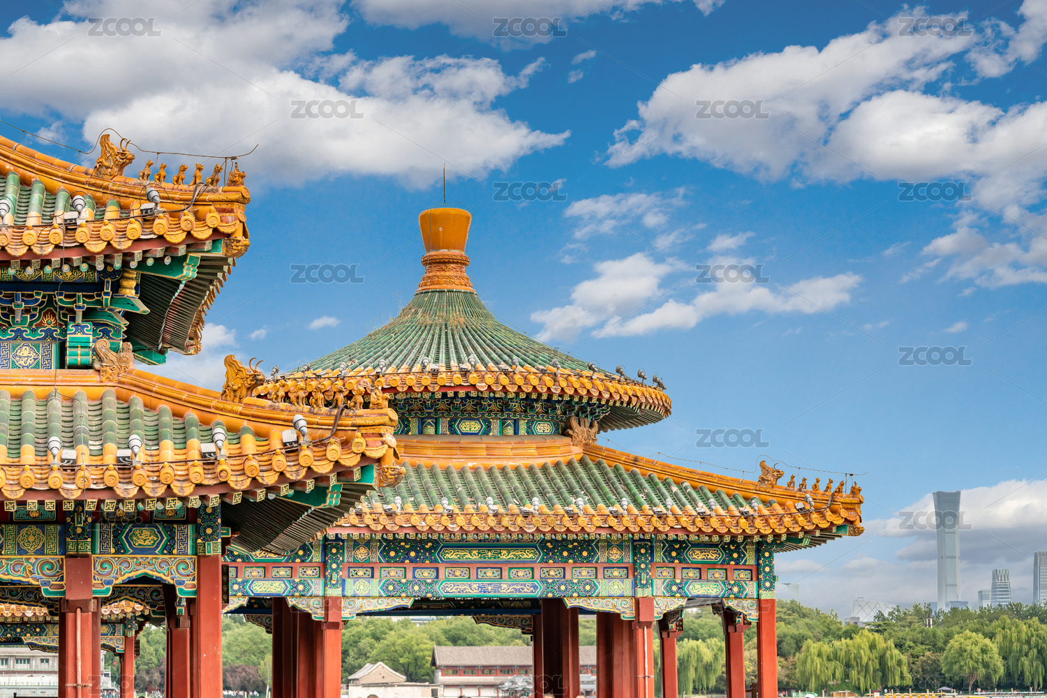 北京北海公园五龙亭与国贸中国尊