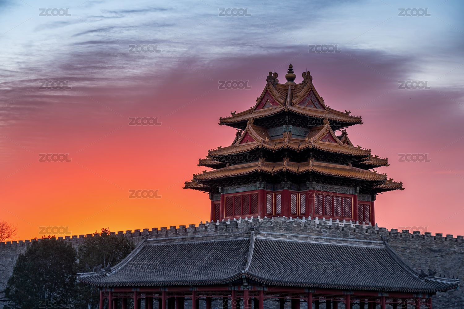 北京故宫角楼日出