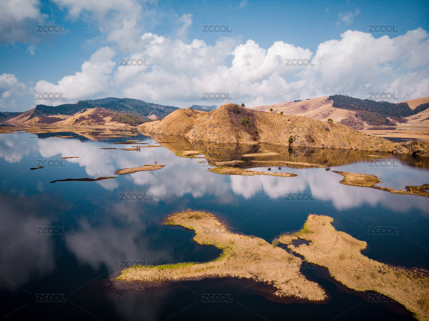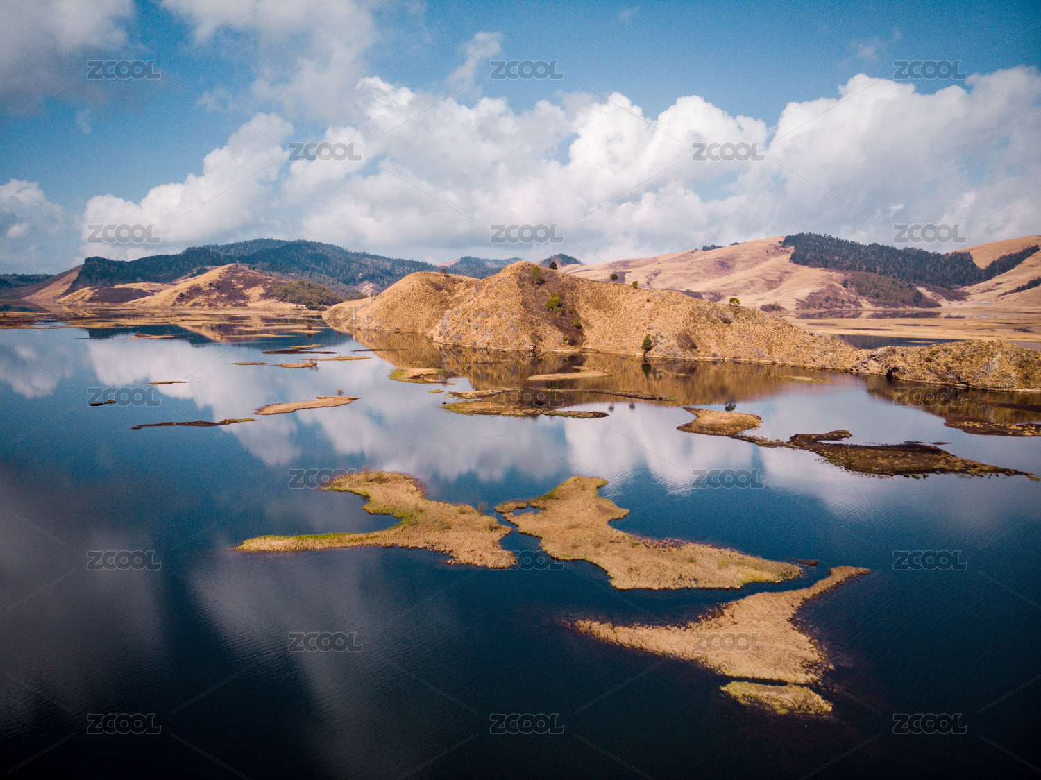 中国云南昭通大山包跳蹬河蓝天高山蓝色水面