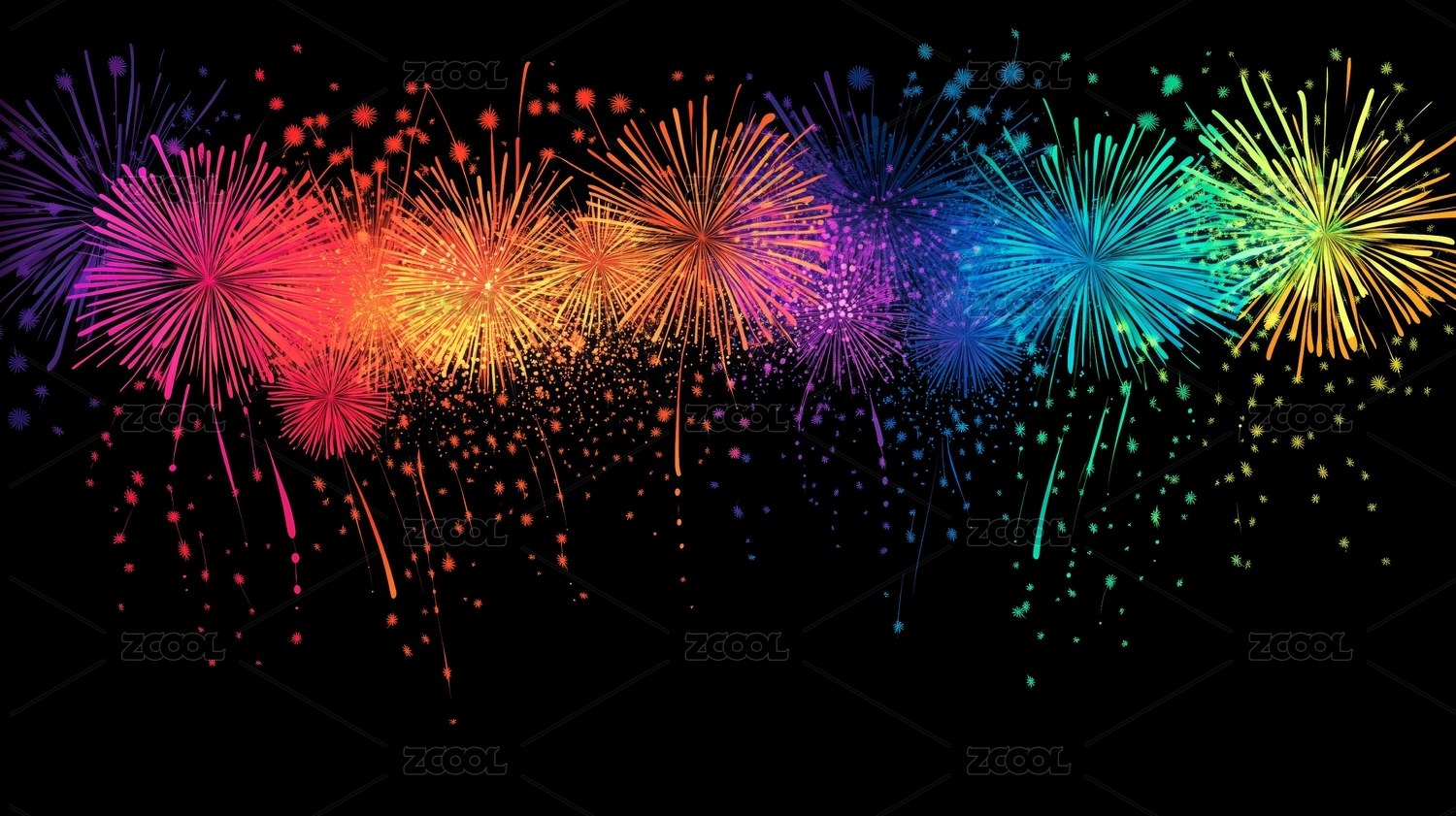 彩色烟花节日庆典浪漫绽放艺术装饰插画