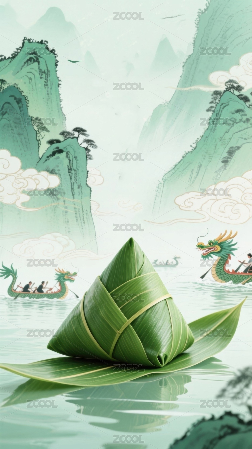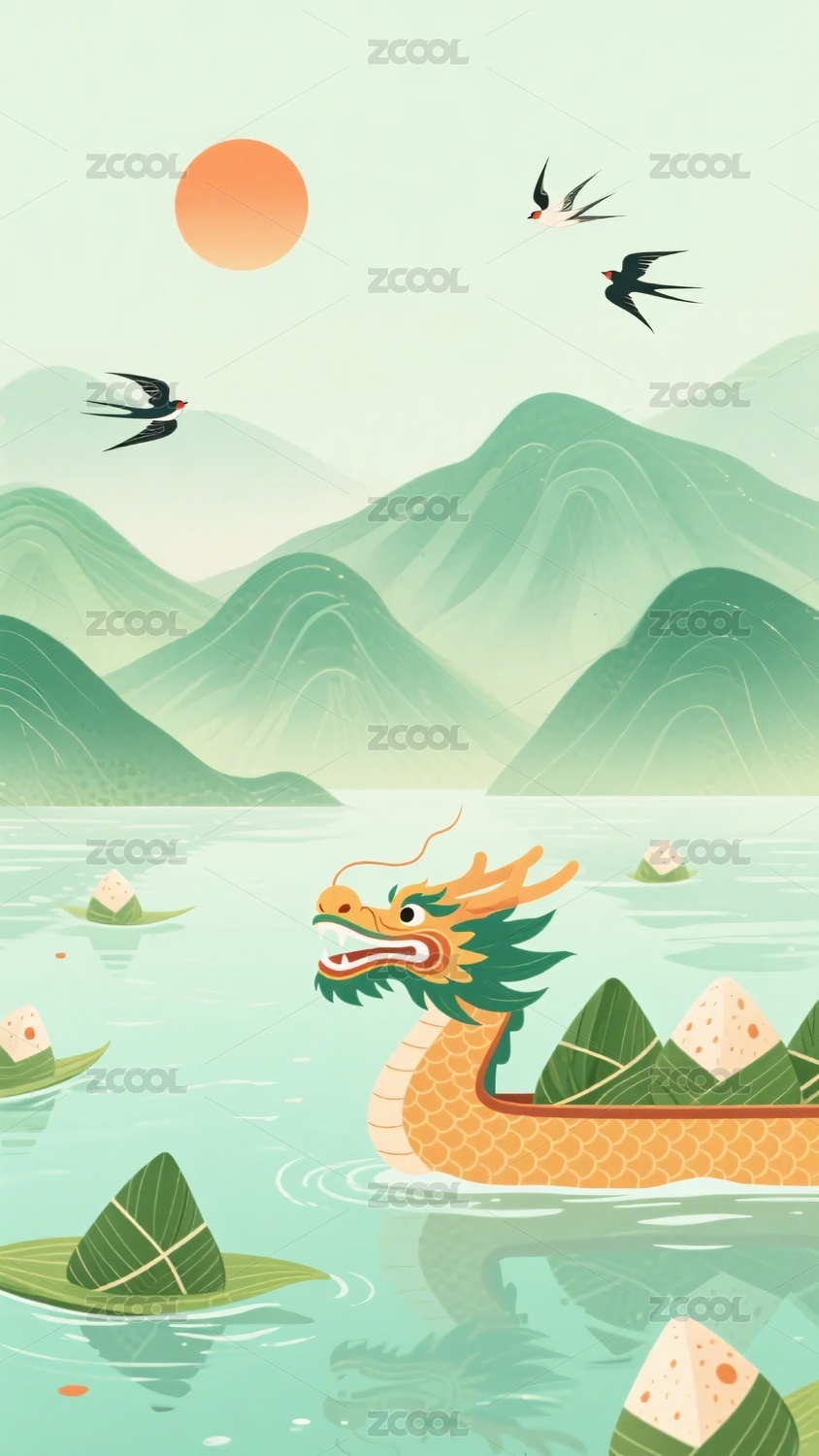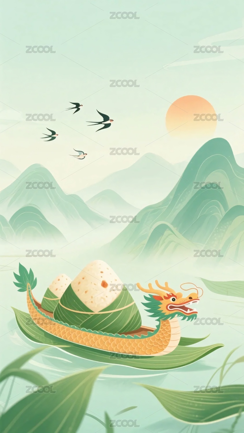 窗户里桌子上摆放的端午粽子和酒矢量插图
