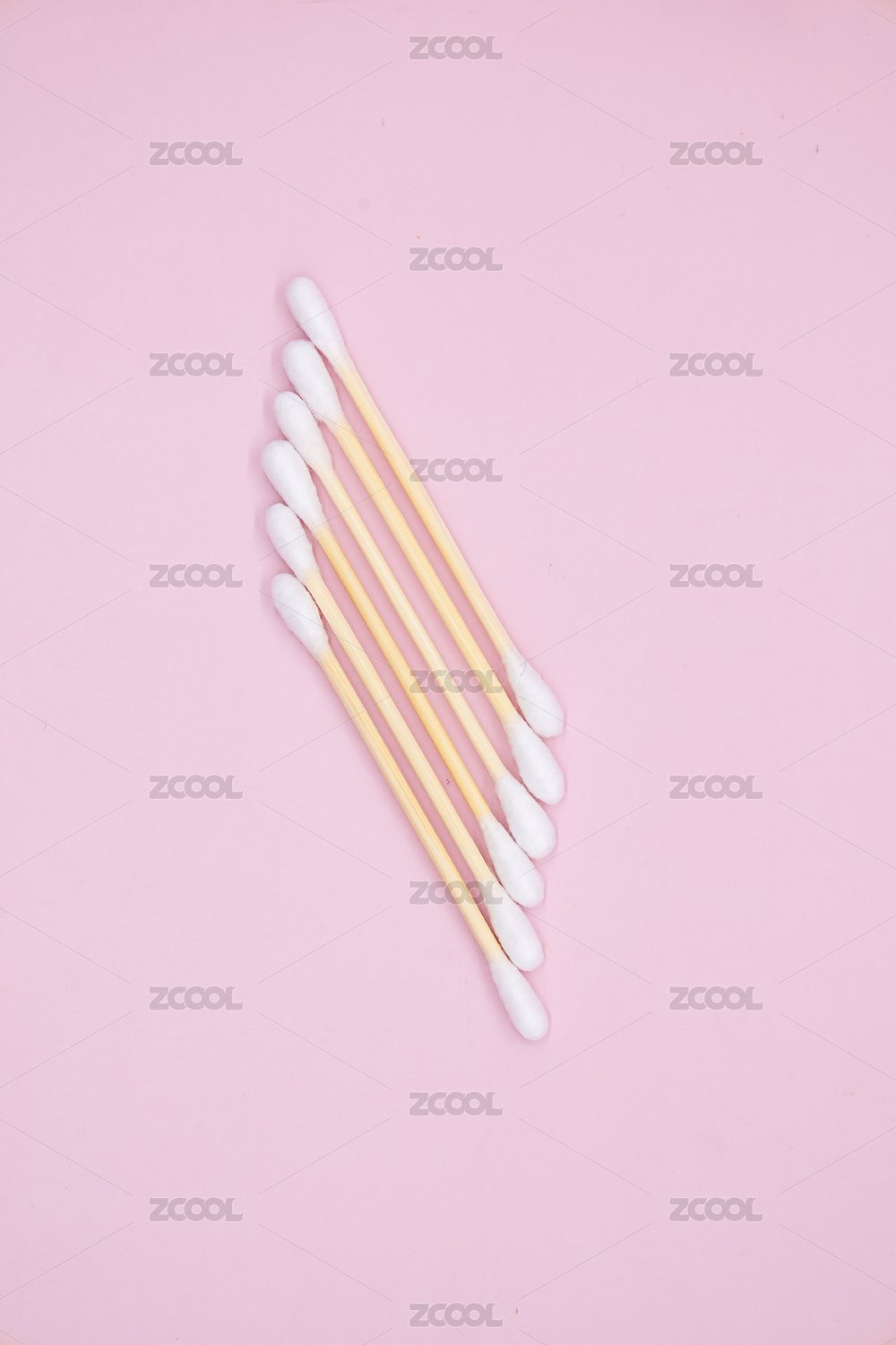 散落的棉签粉色的背景