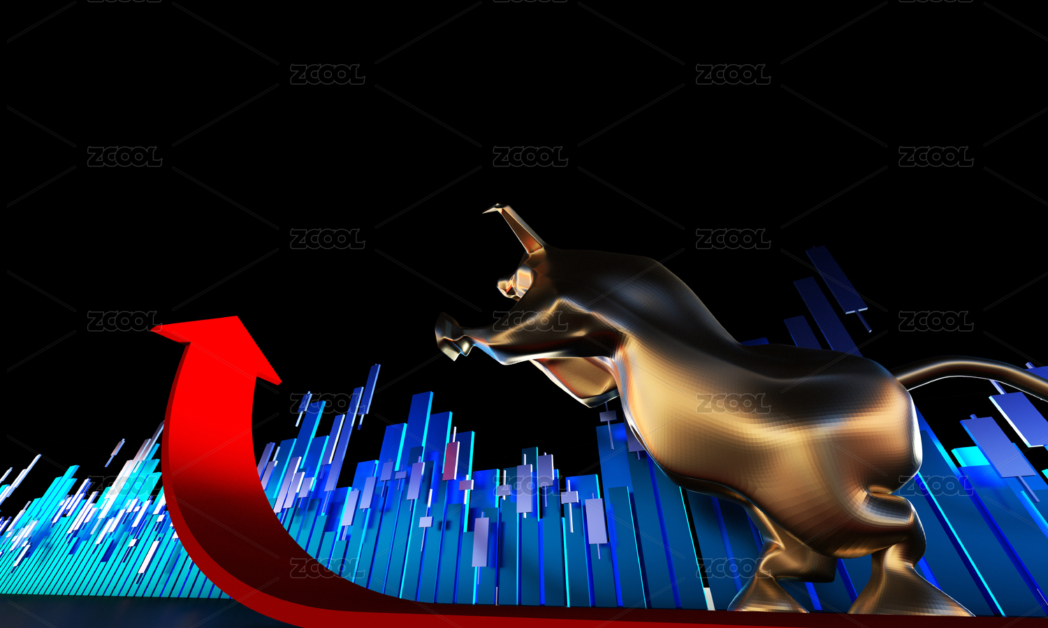 成功箭头与金牛,经济发展与牛市