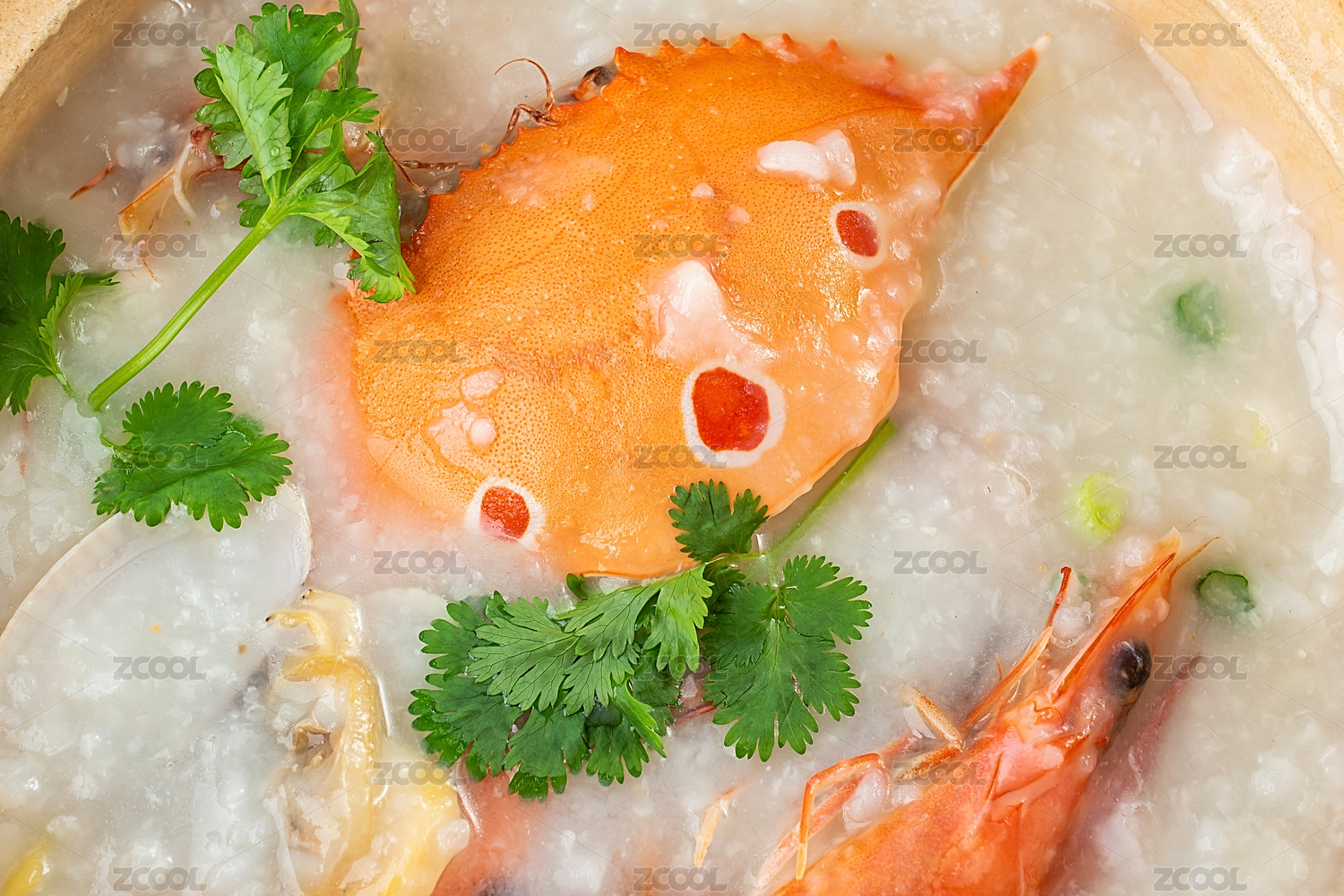 中国潮汕砂锅粥,虾蟹海鲜粥特写