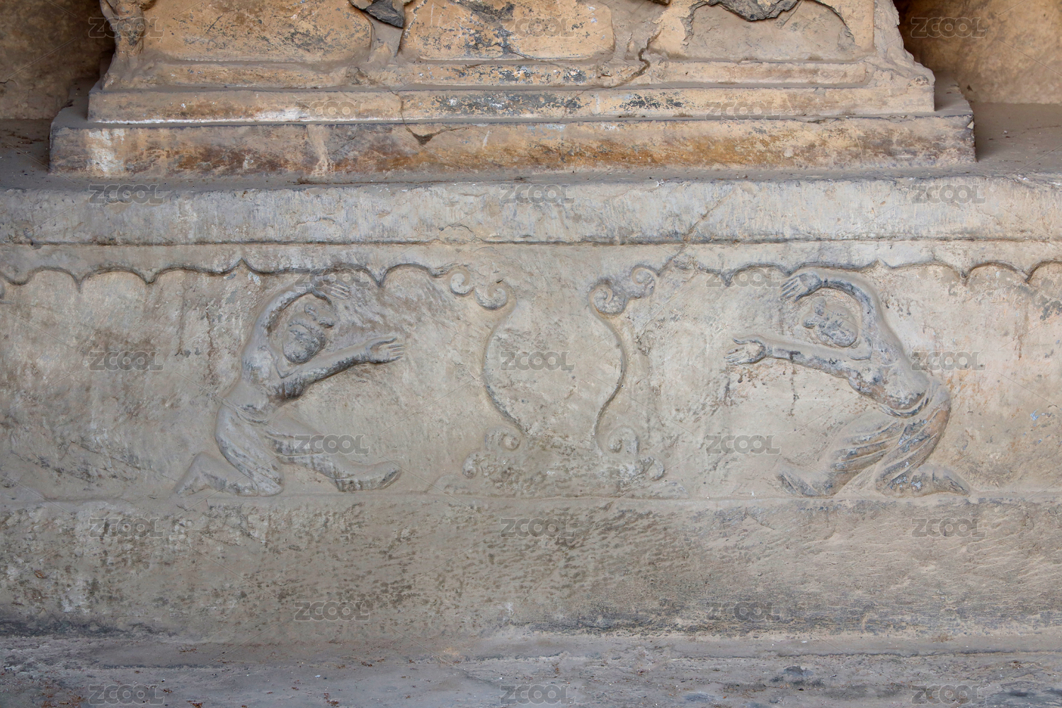 金刚宝座塔墙壁上,精致的共生鸟和法器雕刻