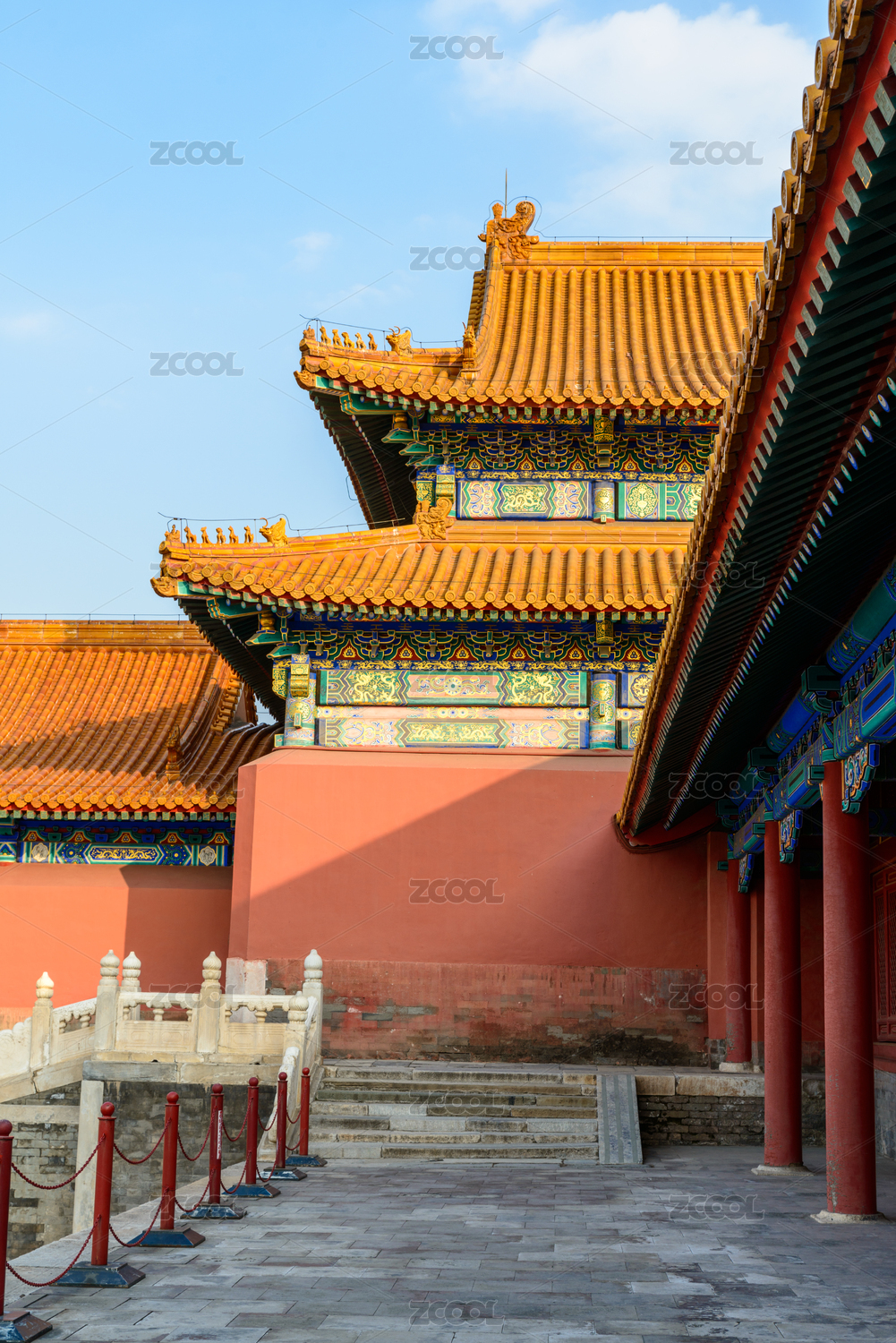 晴朗的蓝天下中国北京故宫博物院宫殿一角