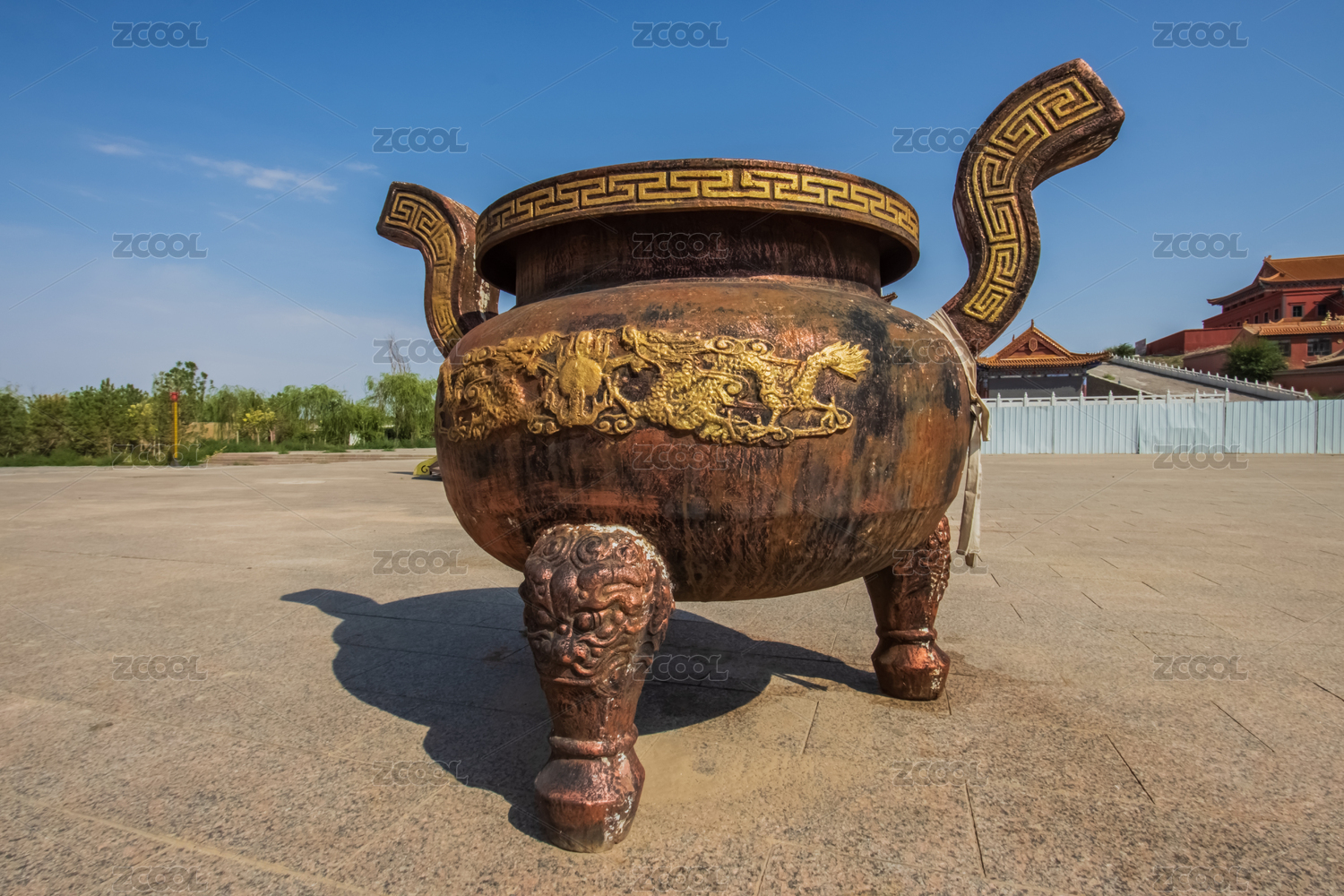 晴天白昼时候,大殿门前竖立着的石鼎摆件