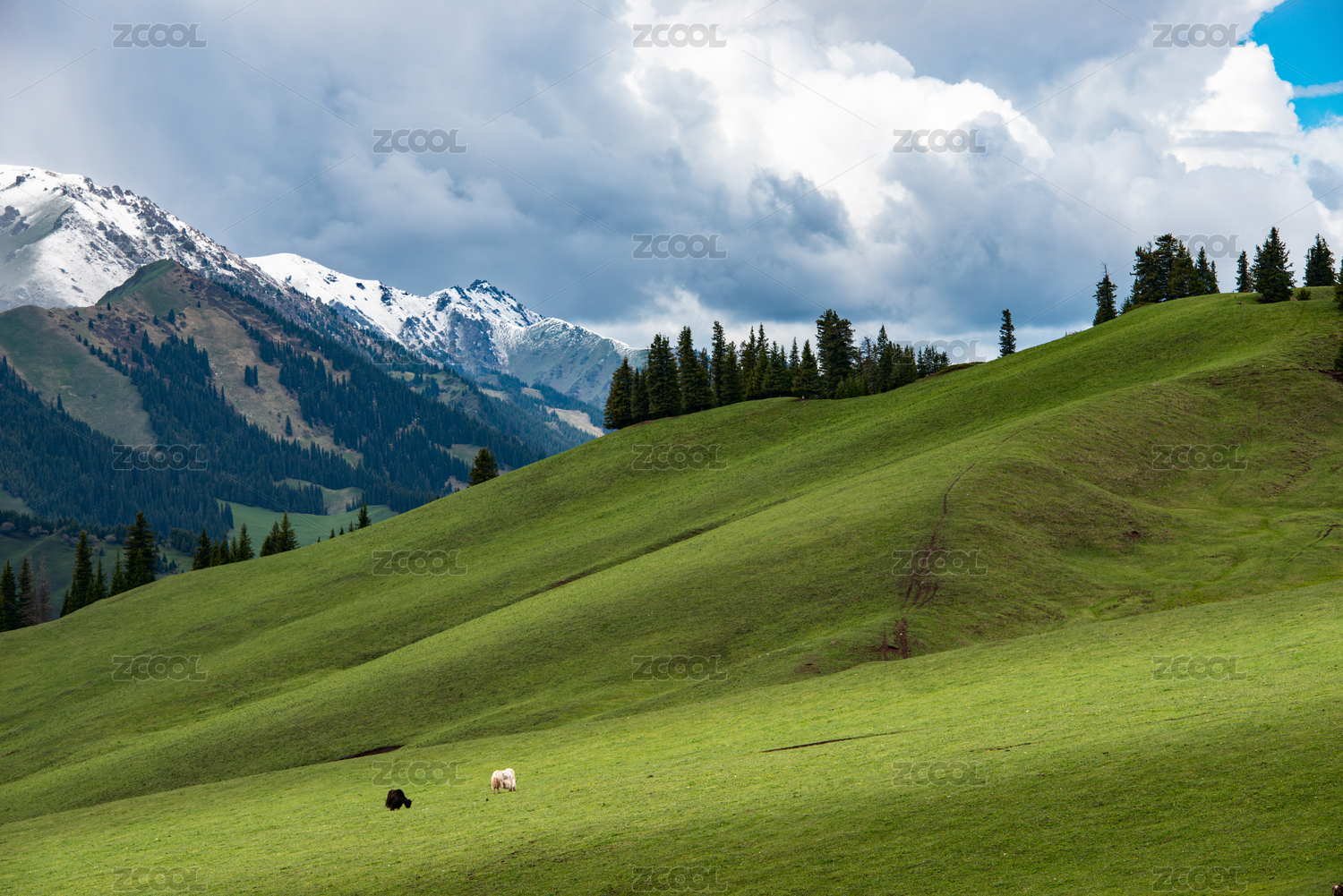 中国新疆喀纳斯国家地质公园山谷草原牛羊群