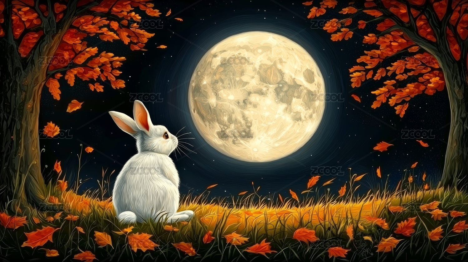 白兔月夜景秋日自然场景