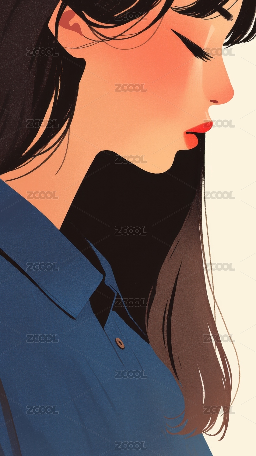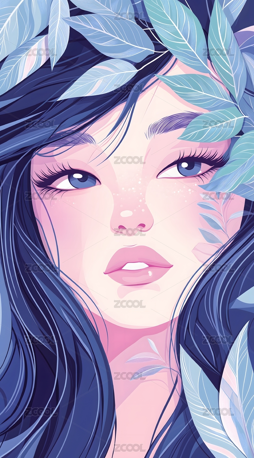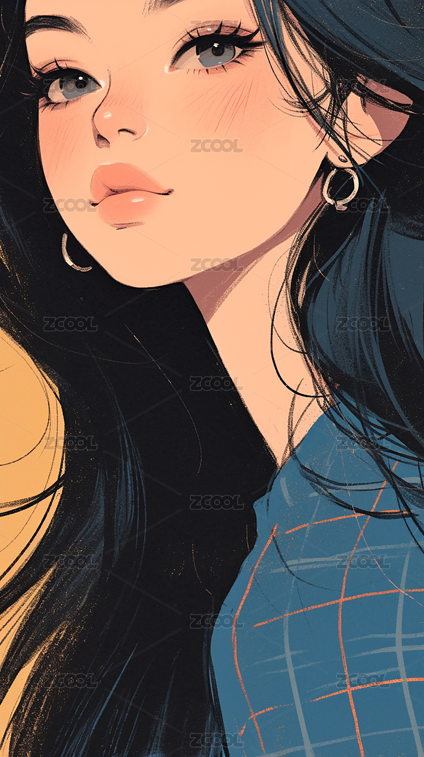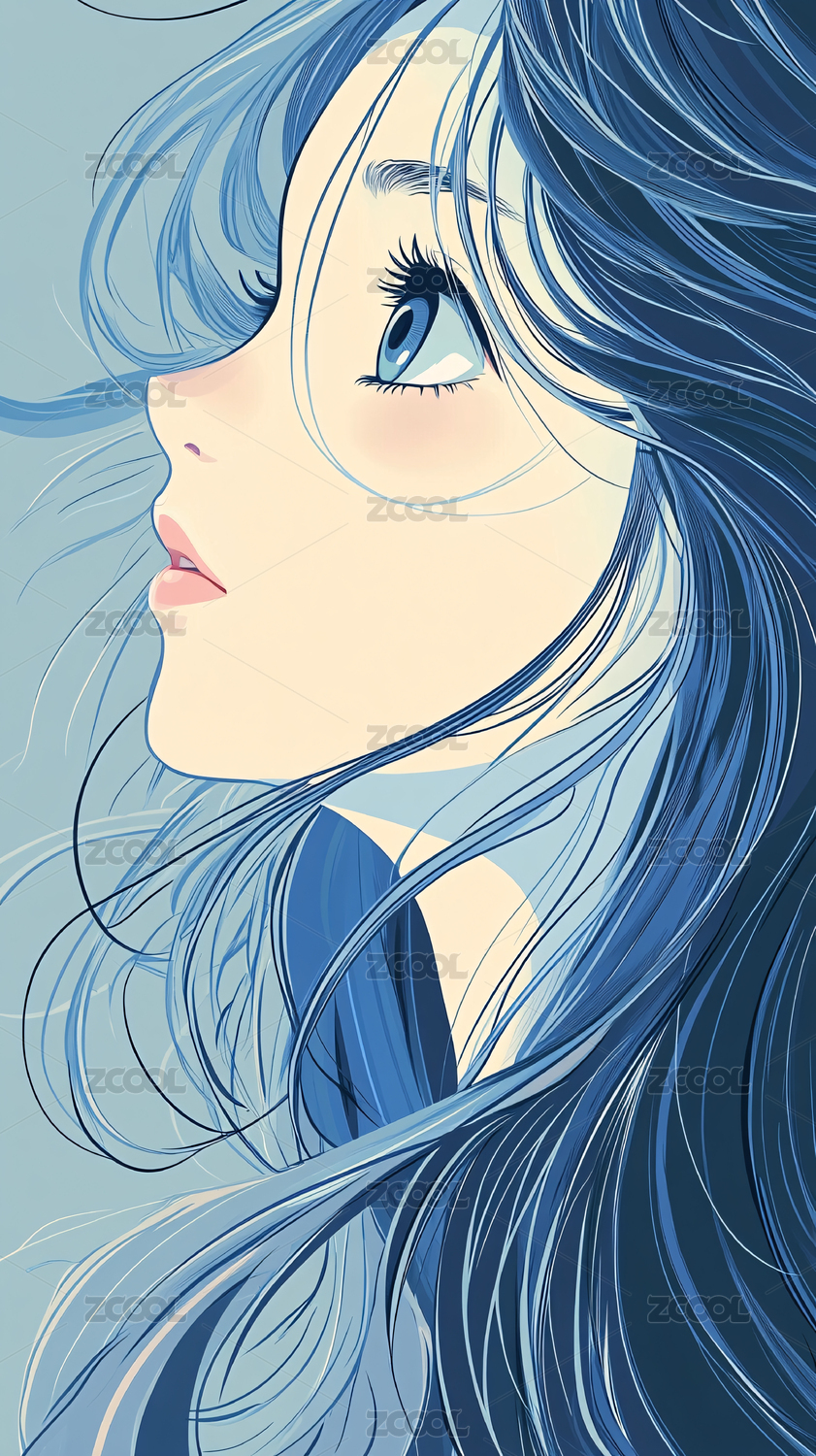 少女,女生,长发,甜美,温柔,唯美,插画,时尚,人物,肖像
