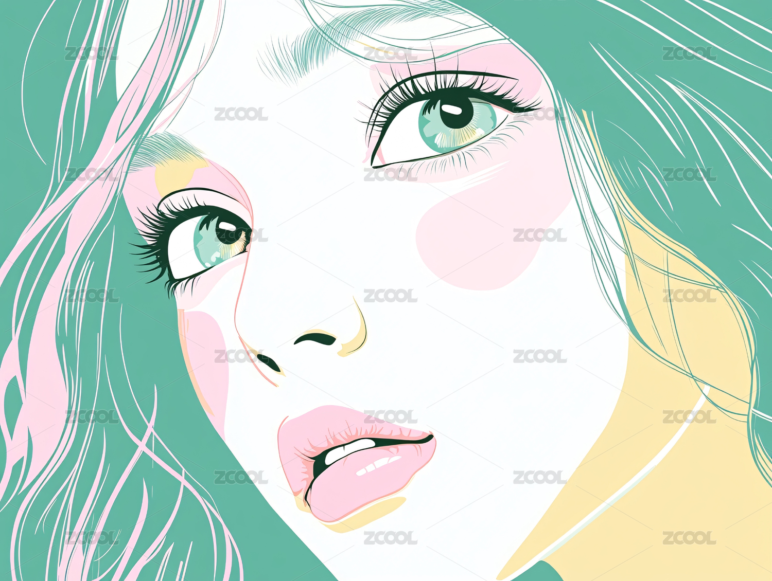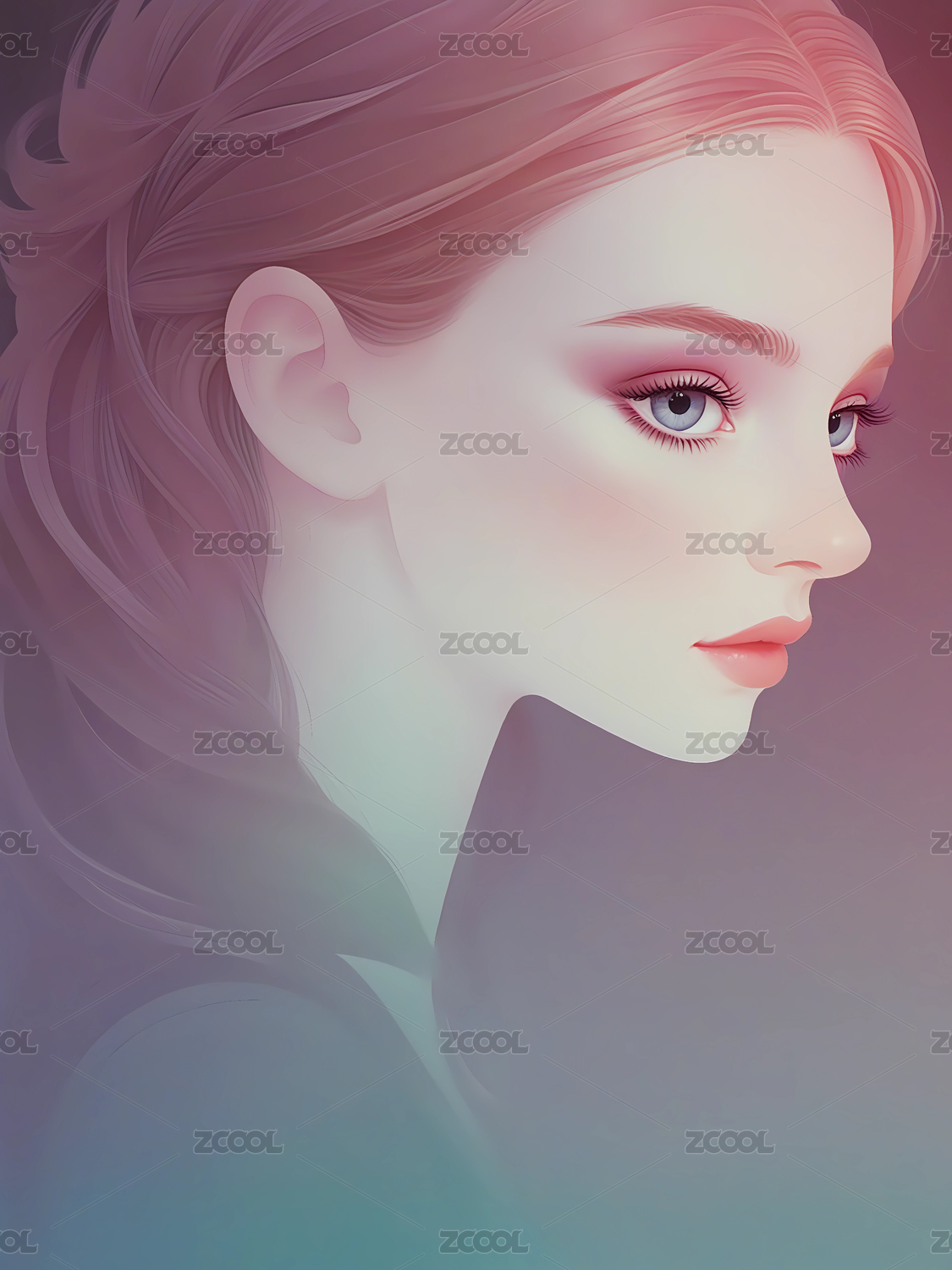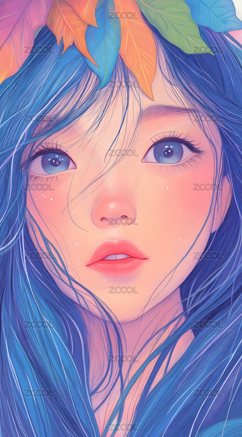 少女,女生,长发,甜美,温柔,唯美,插画,时尚,人物,肖像