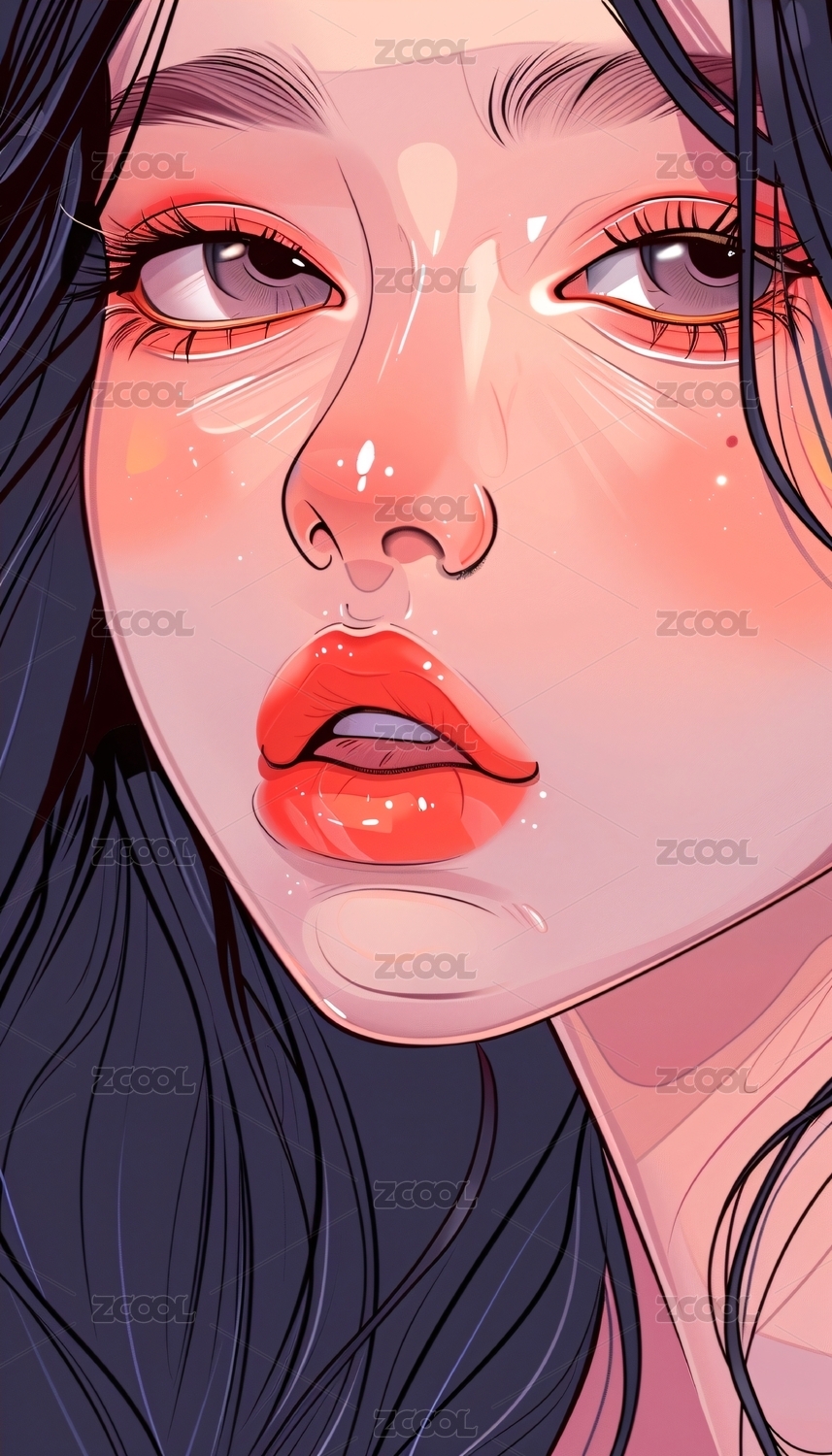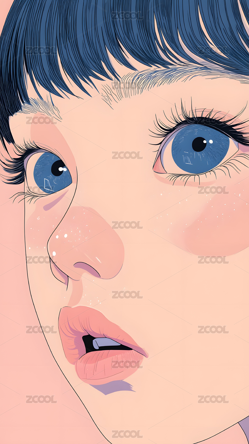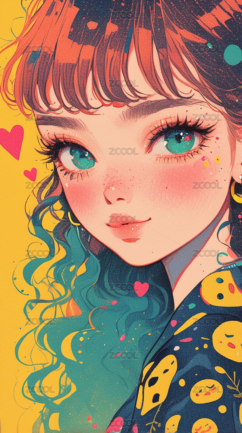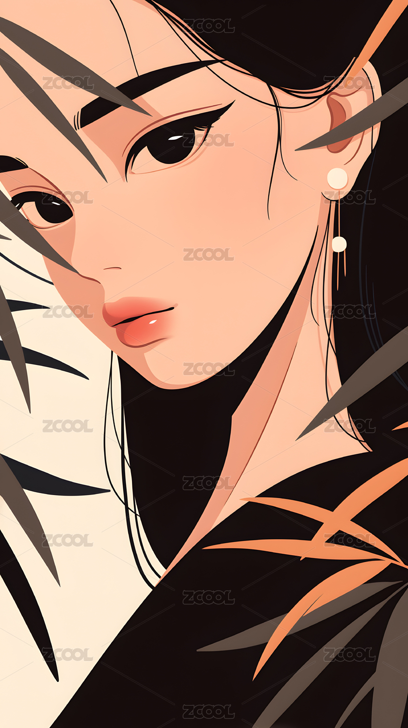 少女,女生,长发,甜美,温柔,唯美,插画,时尚,人物,肖像