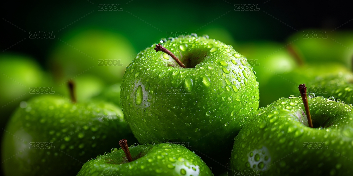 新鲜翠绿苹果特写