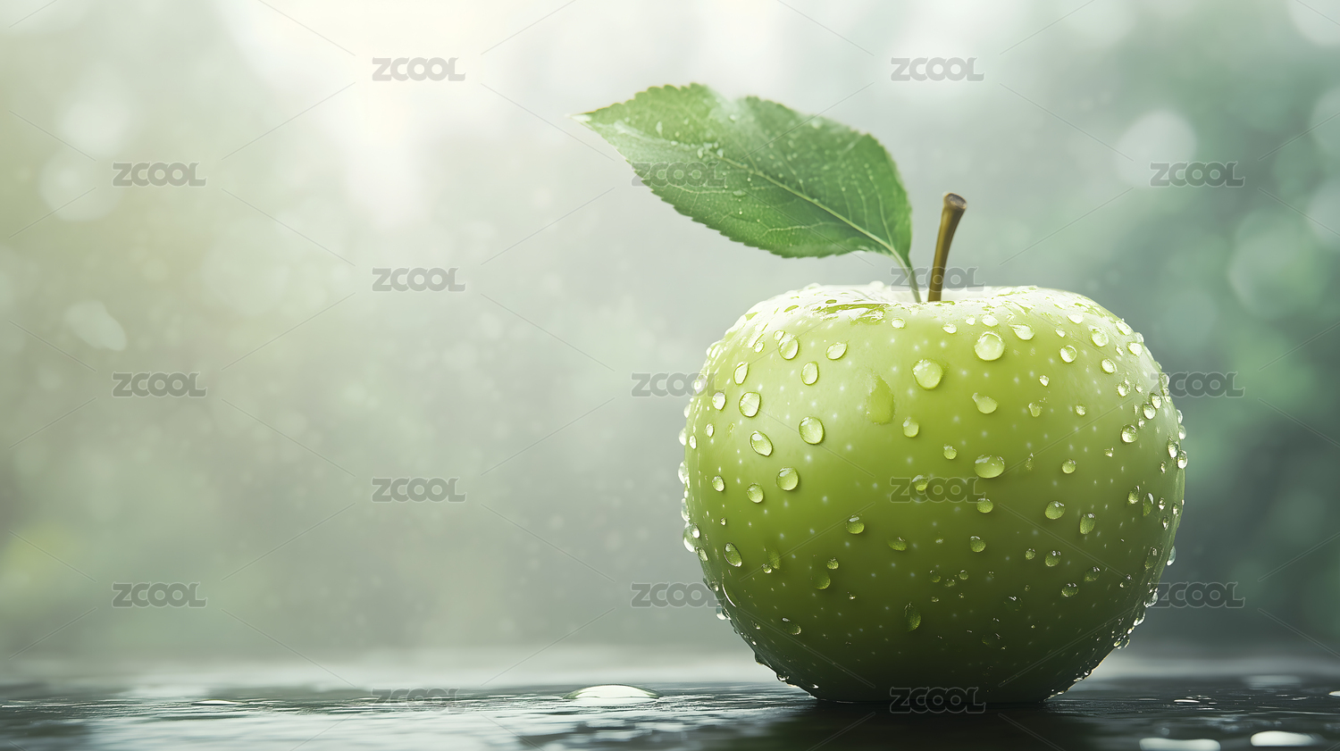 带水珠的青苹果