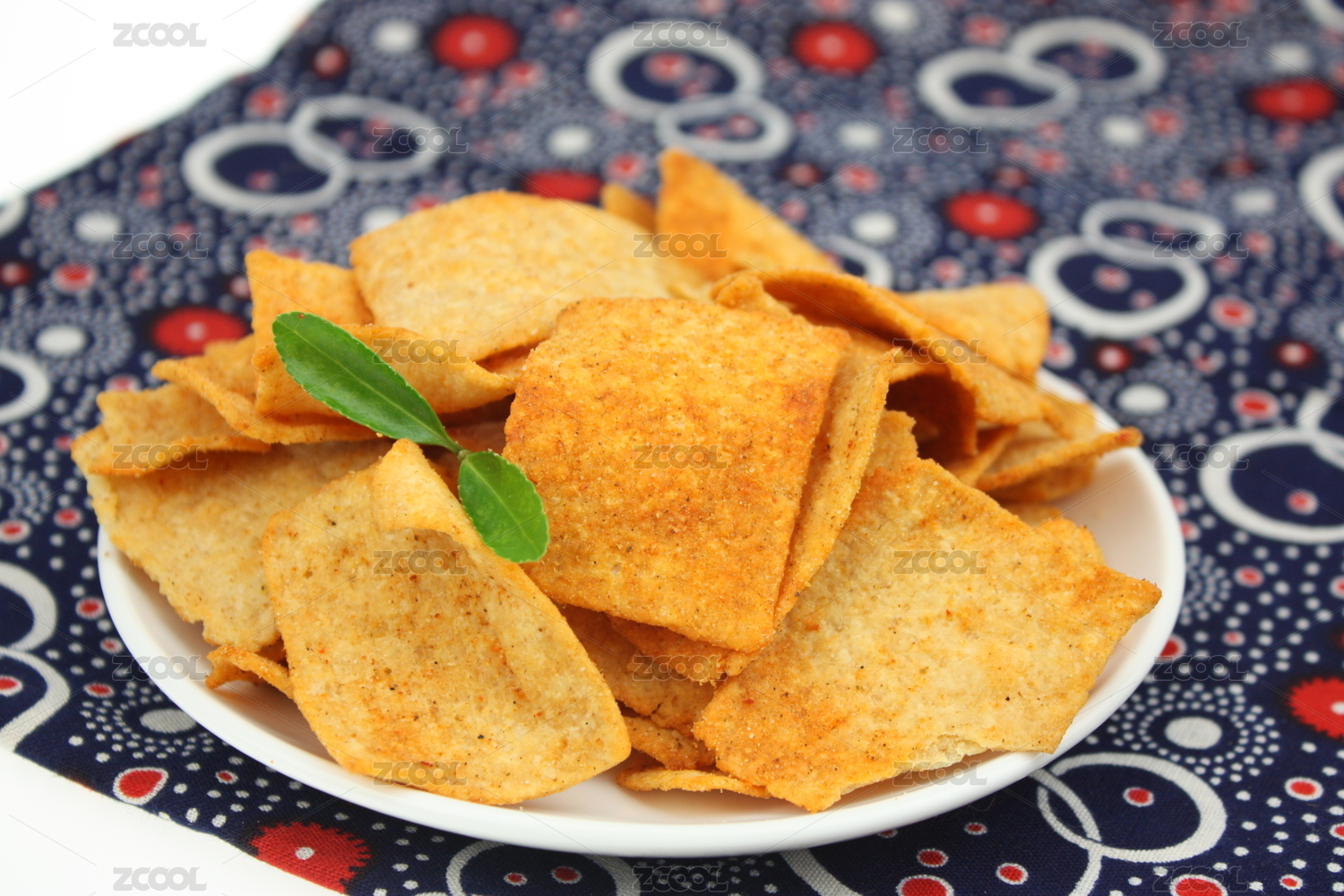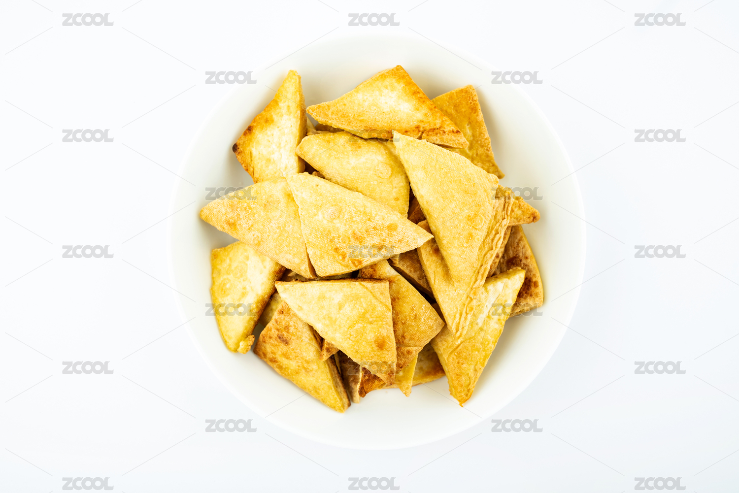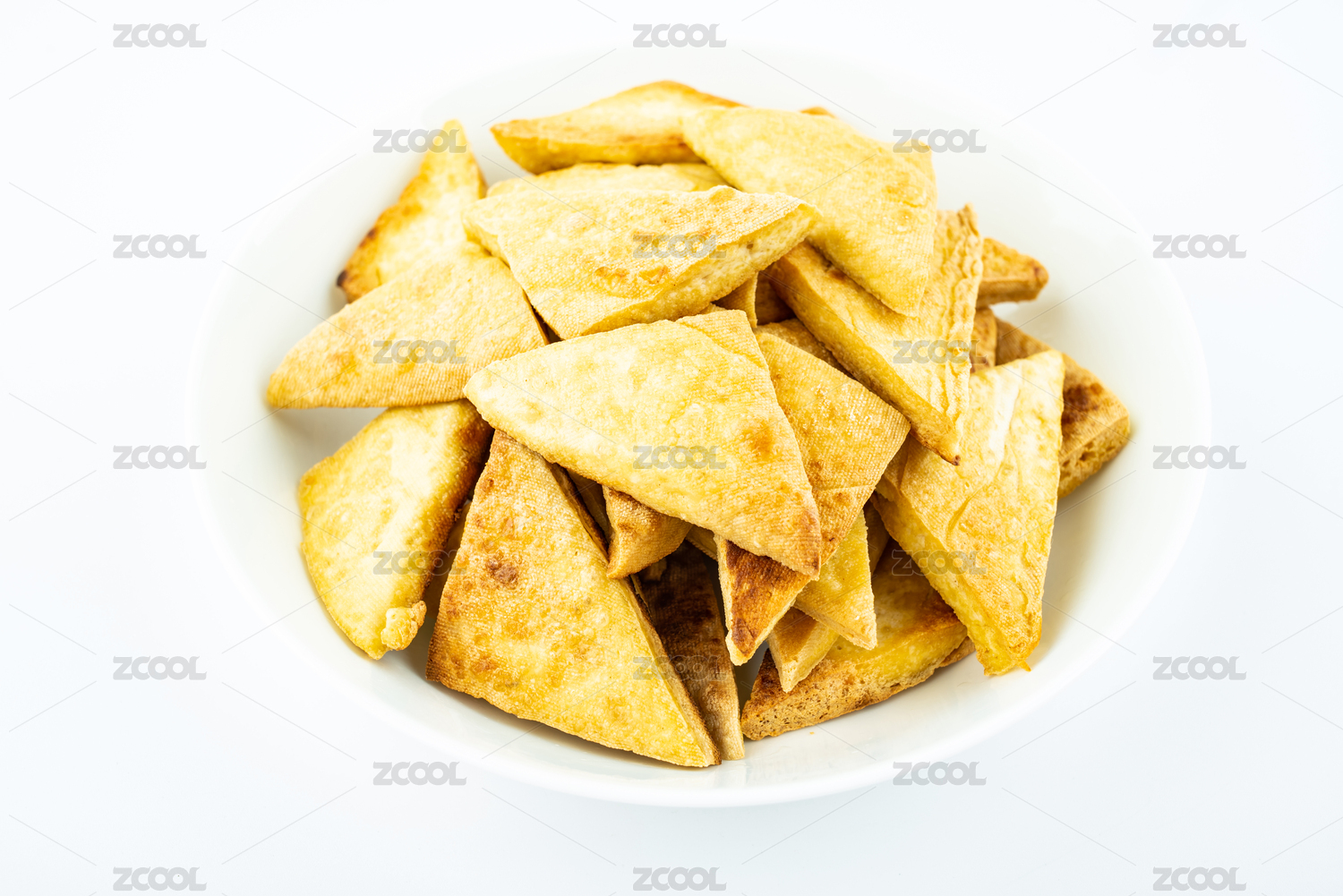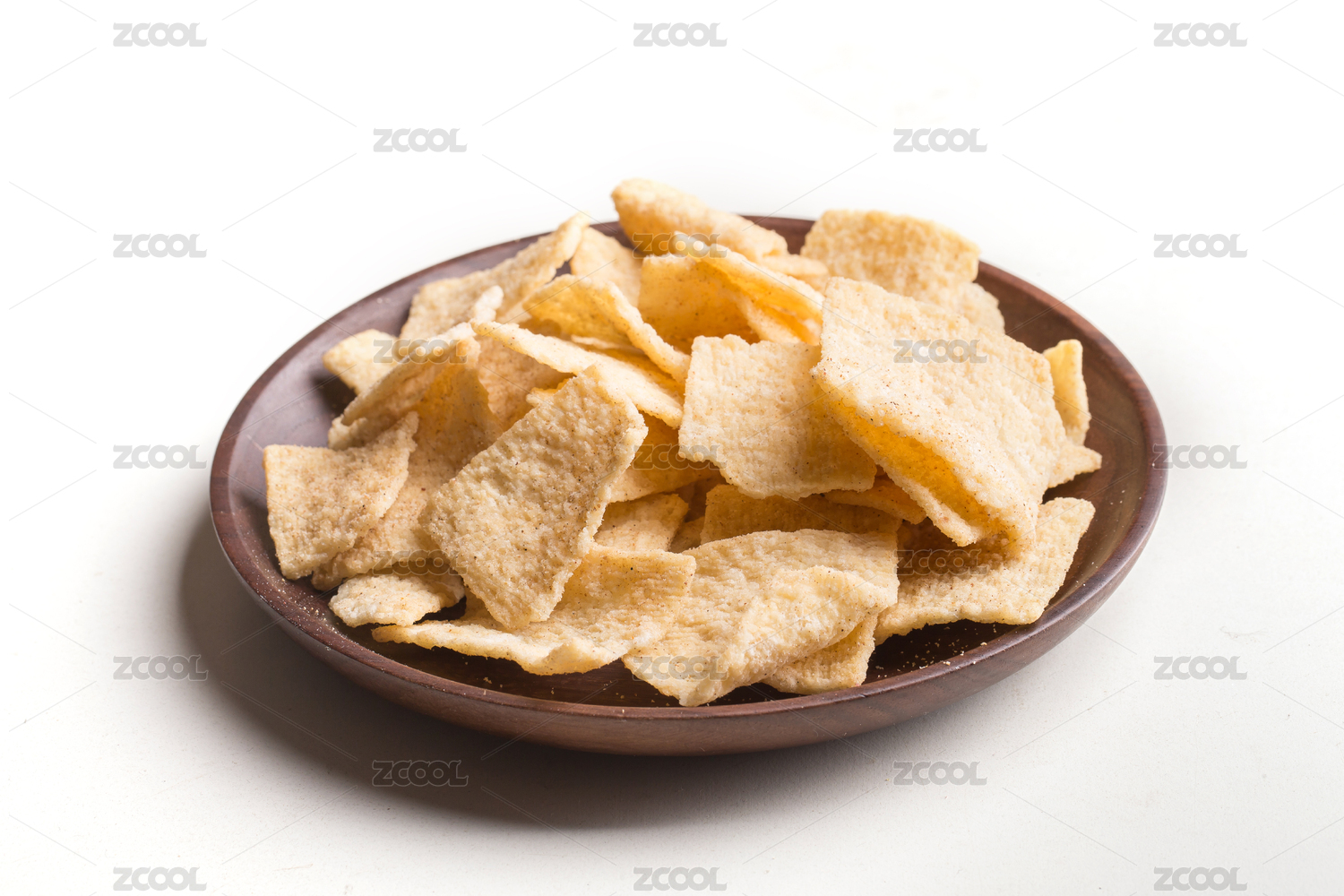白背景下的一盘五香小米锅巴