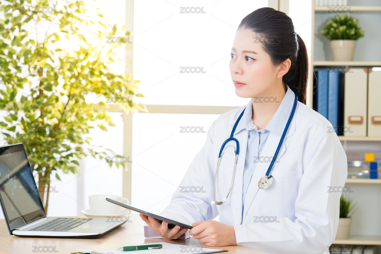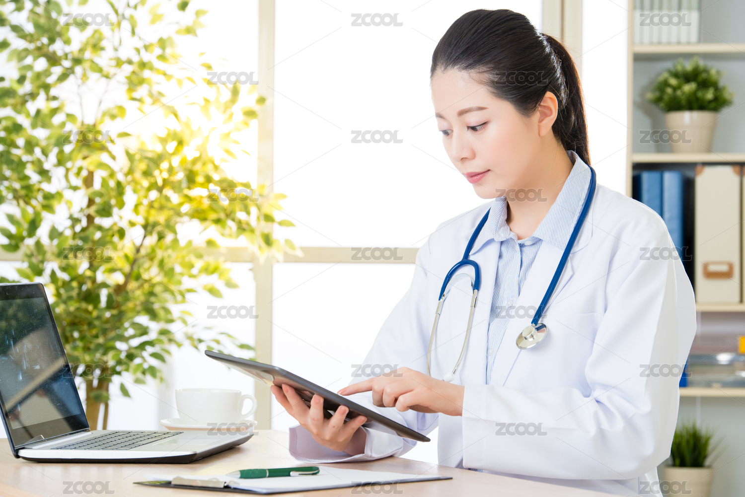 医生使用数字平板研究患者的医疗情况,医疗保健和医学的概念,医院办公室背景
