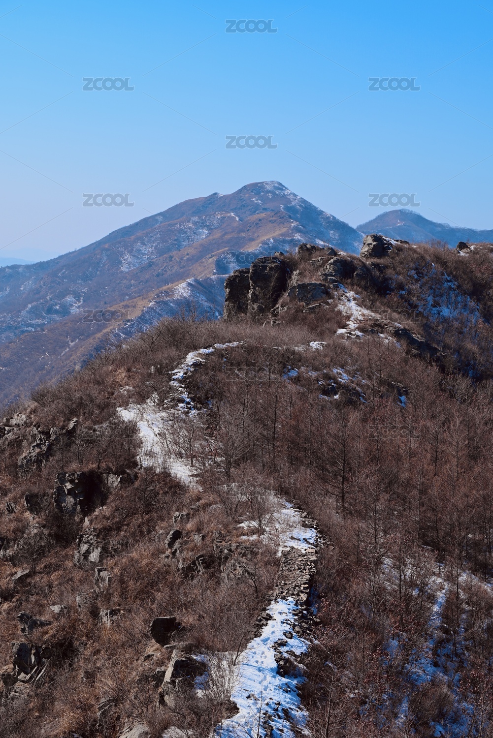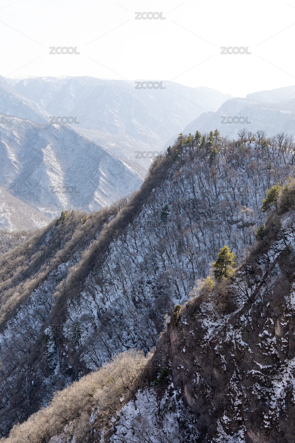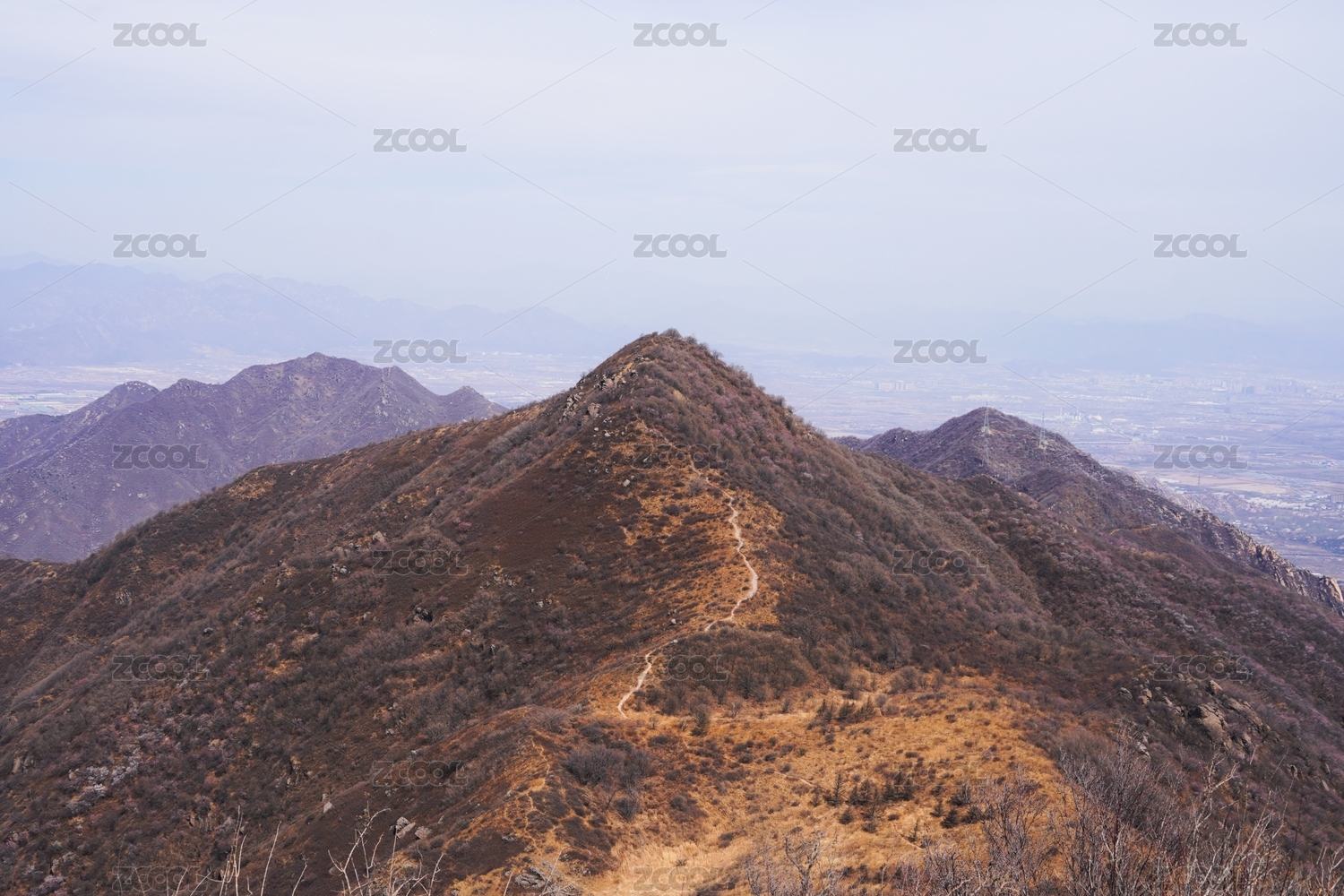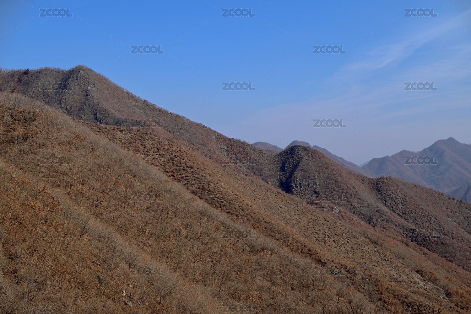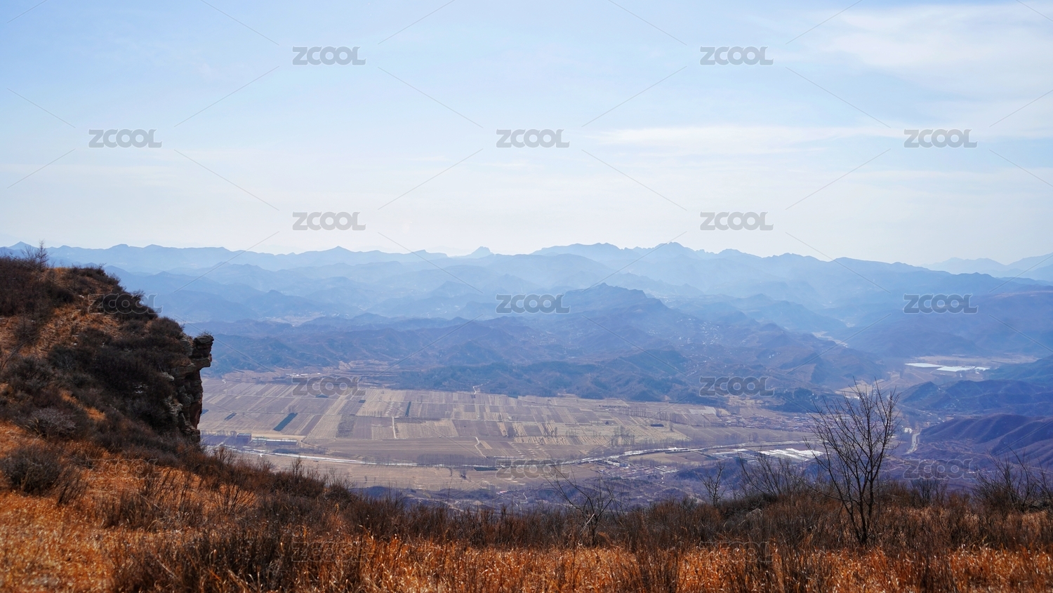 甘肃崆峒山北方冬天枯黄色山脉山峰山谷