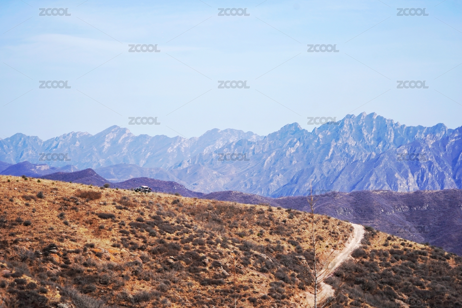 春天蓝天下的山