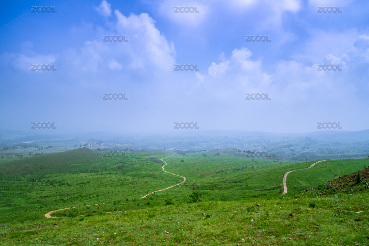 蓝天白云下绿草萋萋