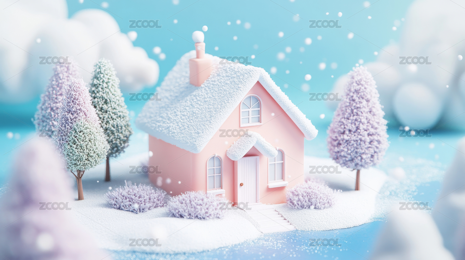 冬季小屋雪景3D渲染图