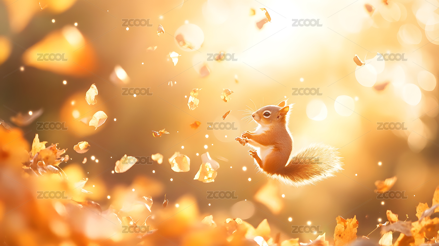橙色松鼠花瓣秋景