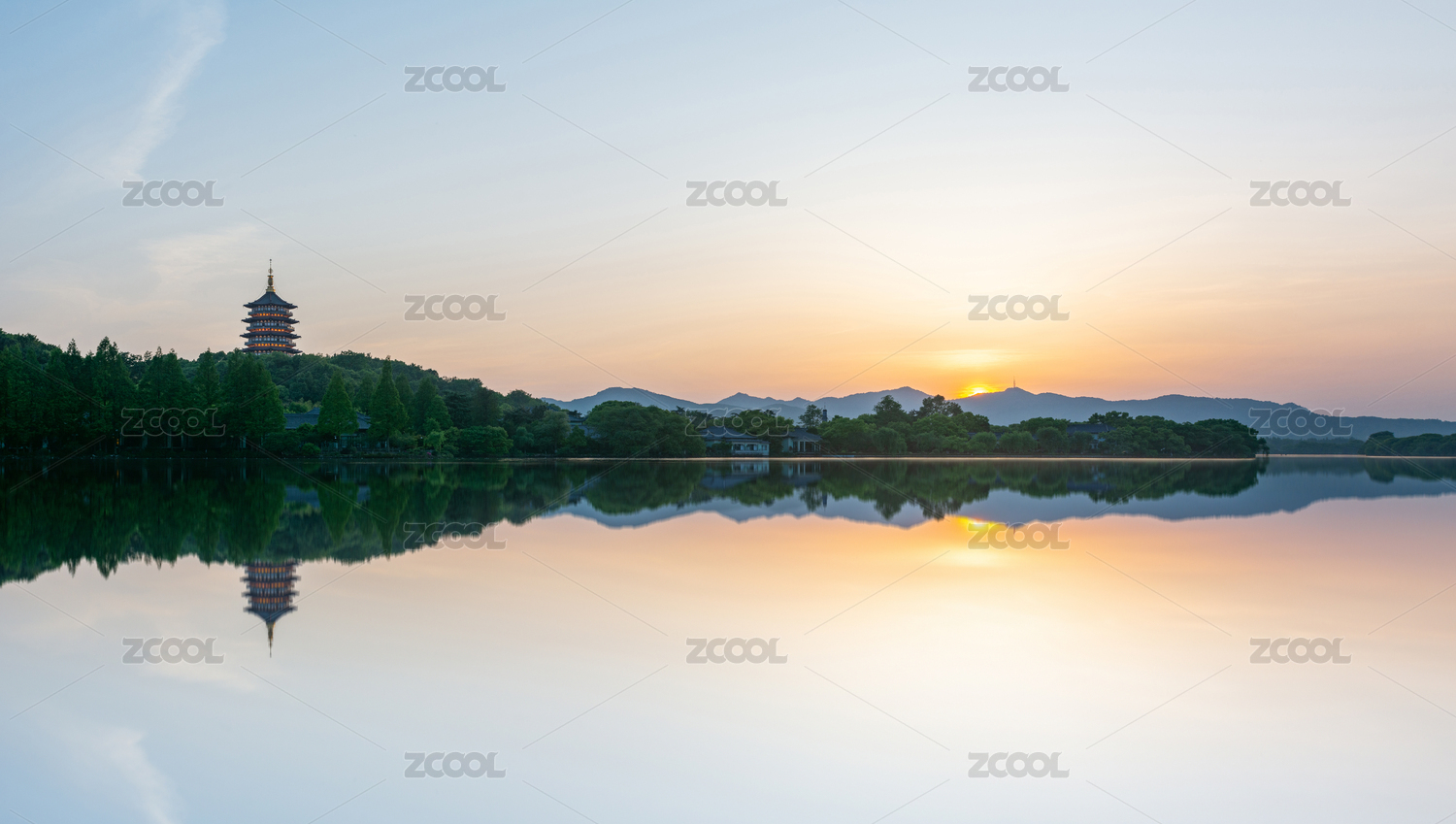 中国浙江杭州西湖雷峰塔和双投桥长桥风光