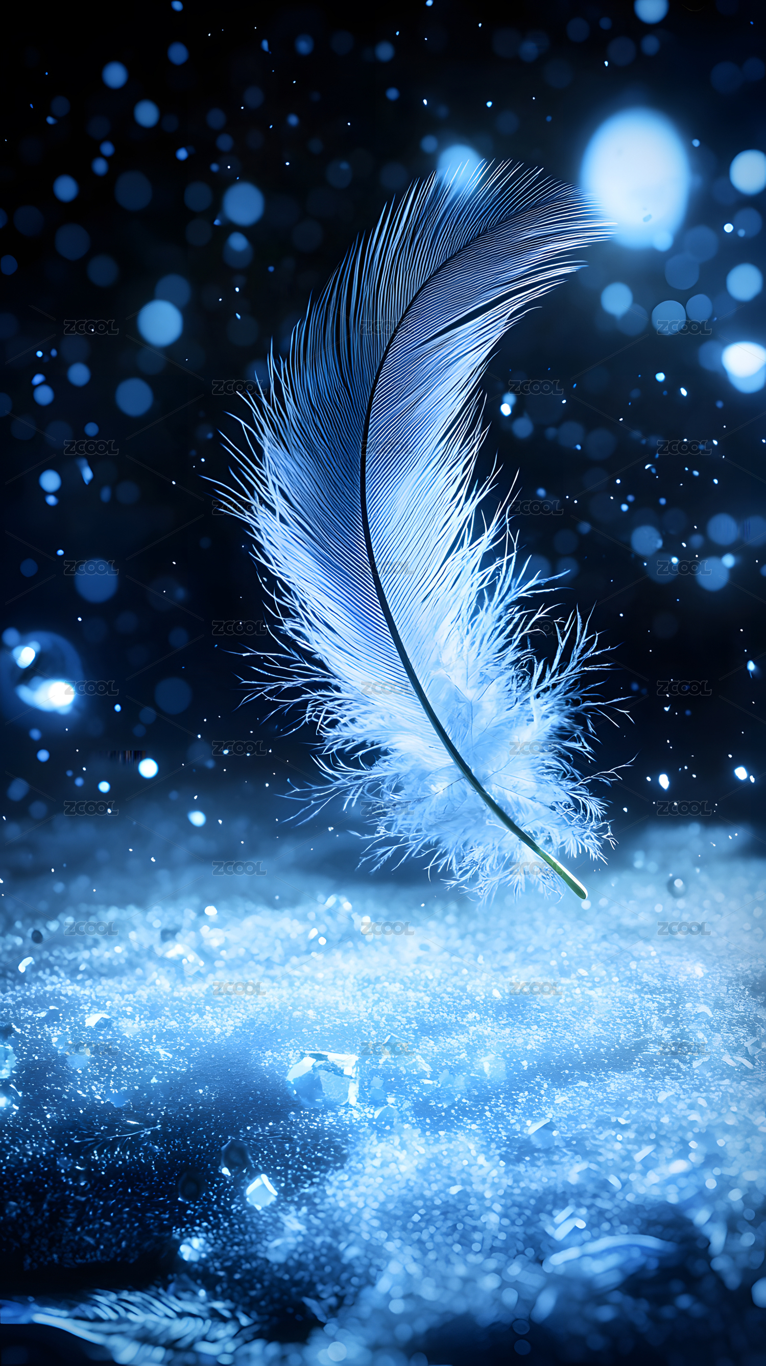 蓝色羽毛光影粒子梦幻壁纸