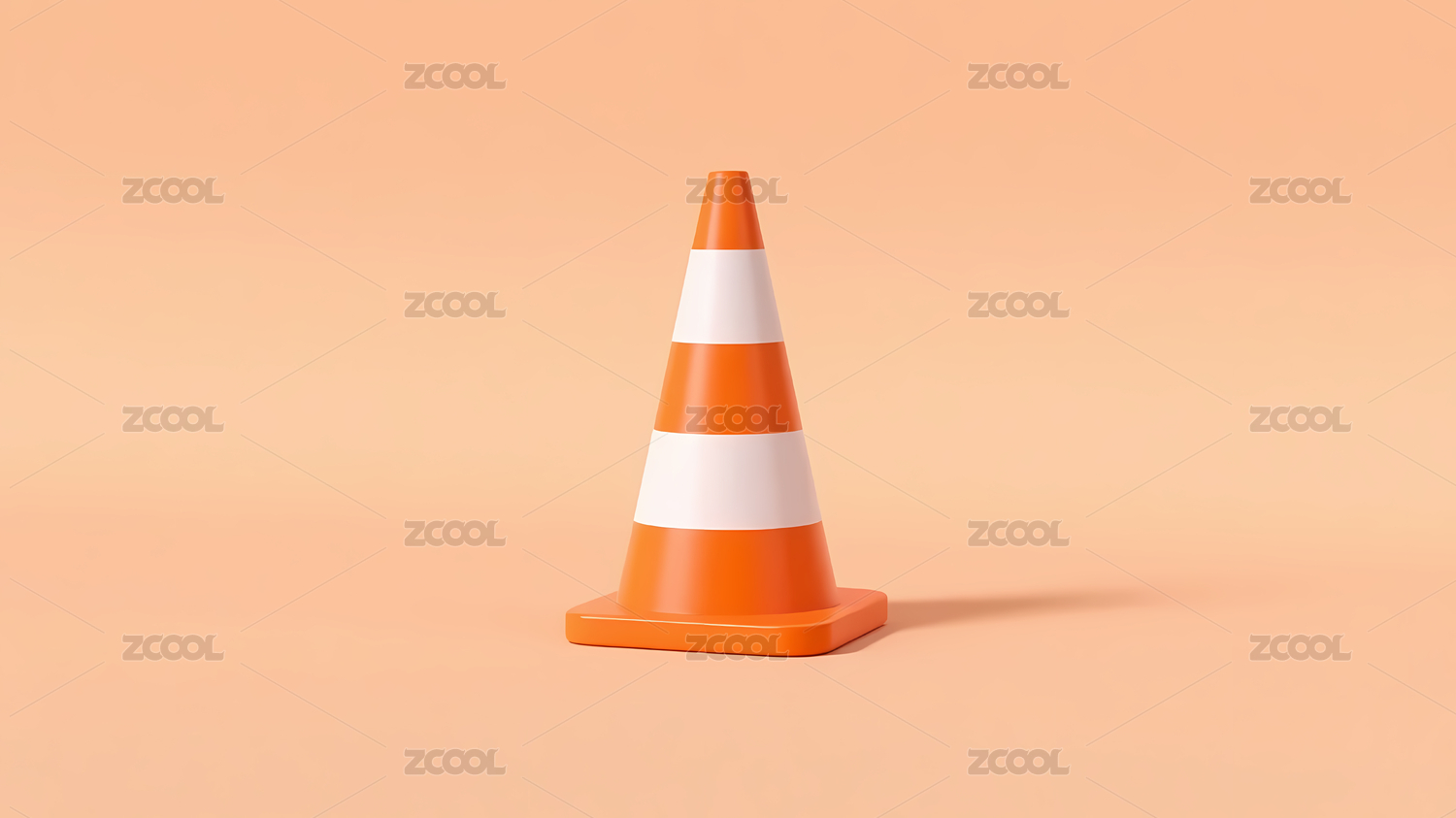 橙色交通锥与粉色背景的卡通风格