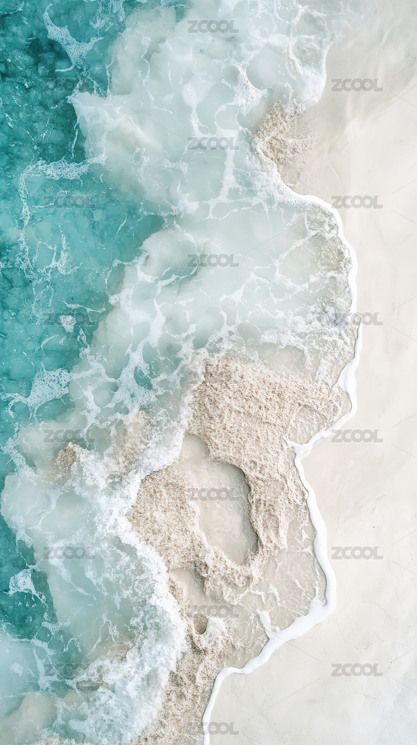 鸟瞰视角下的海岸线展示清澈见底的海水