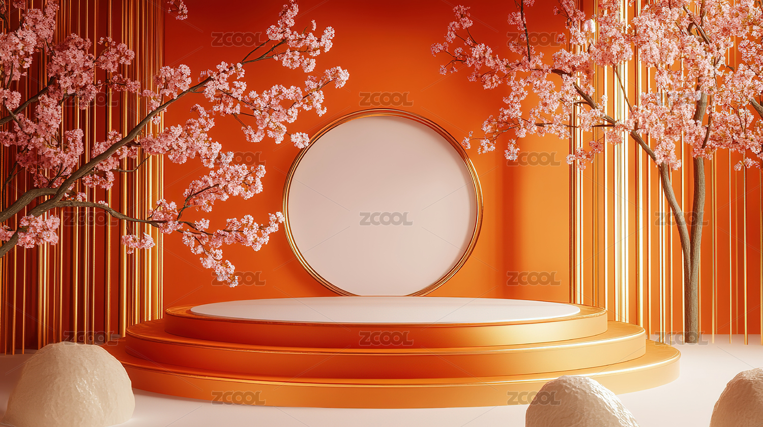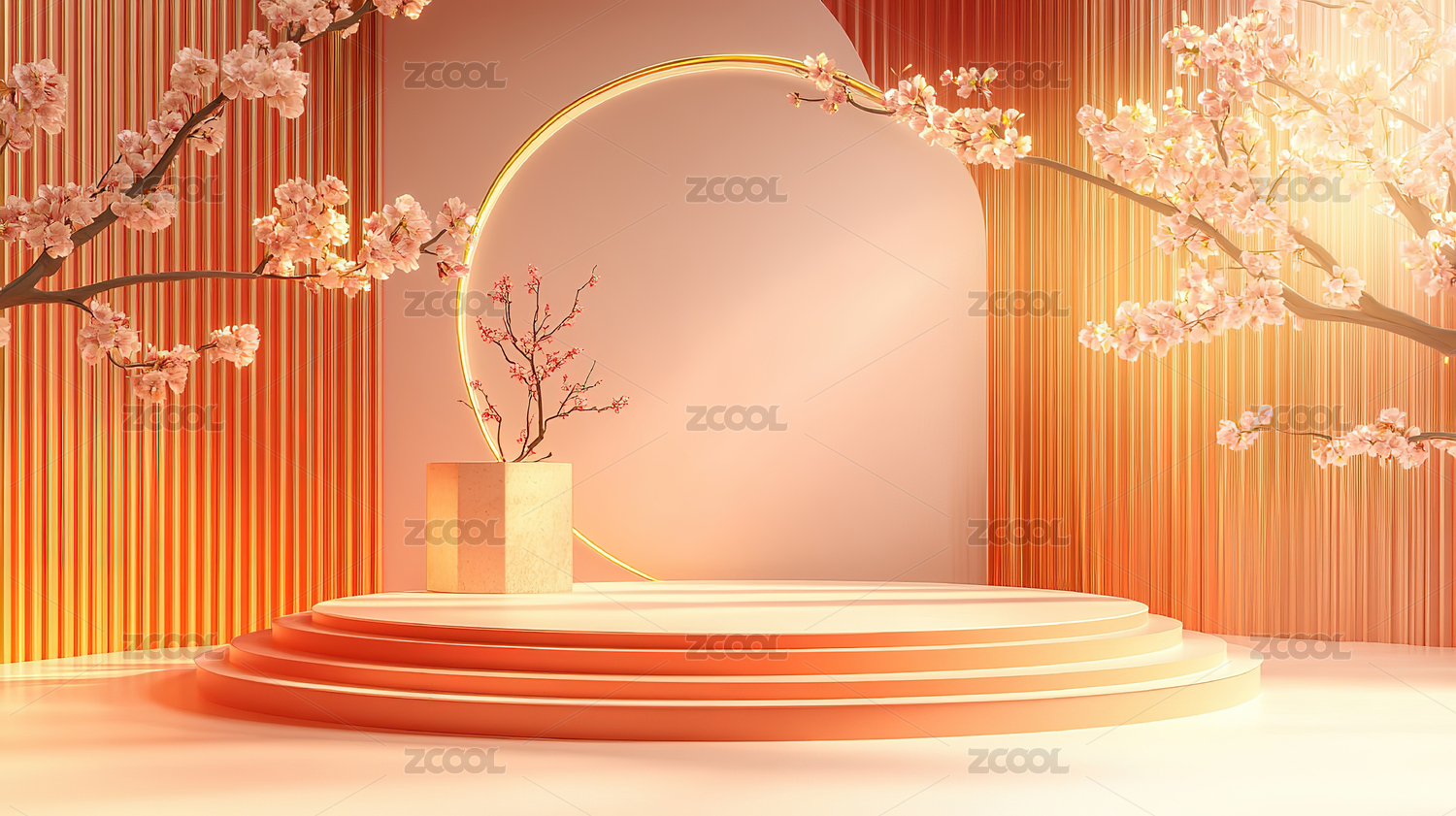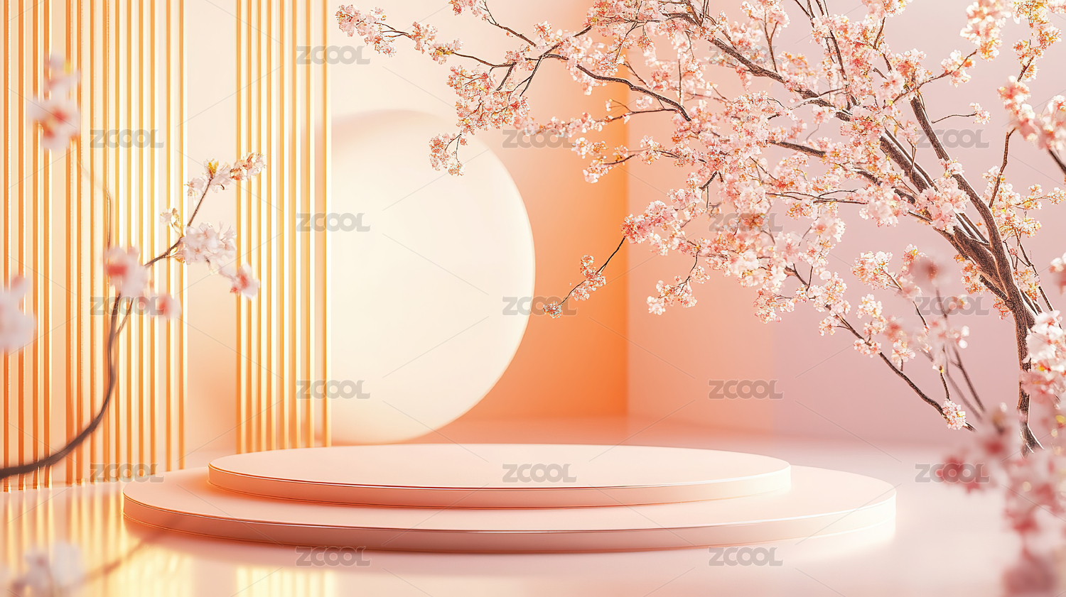 3D粉色鲜花小清新圆形产品展台