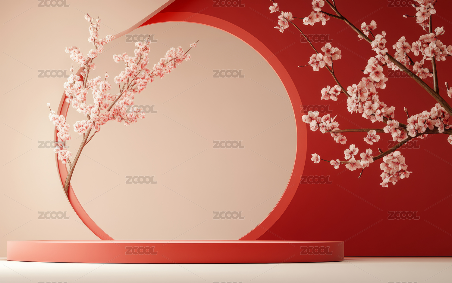 传统的红色新年主题电商产品展示背景